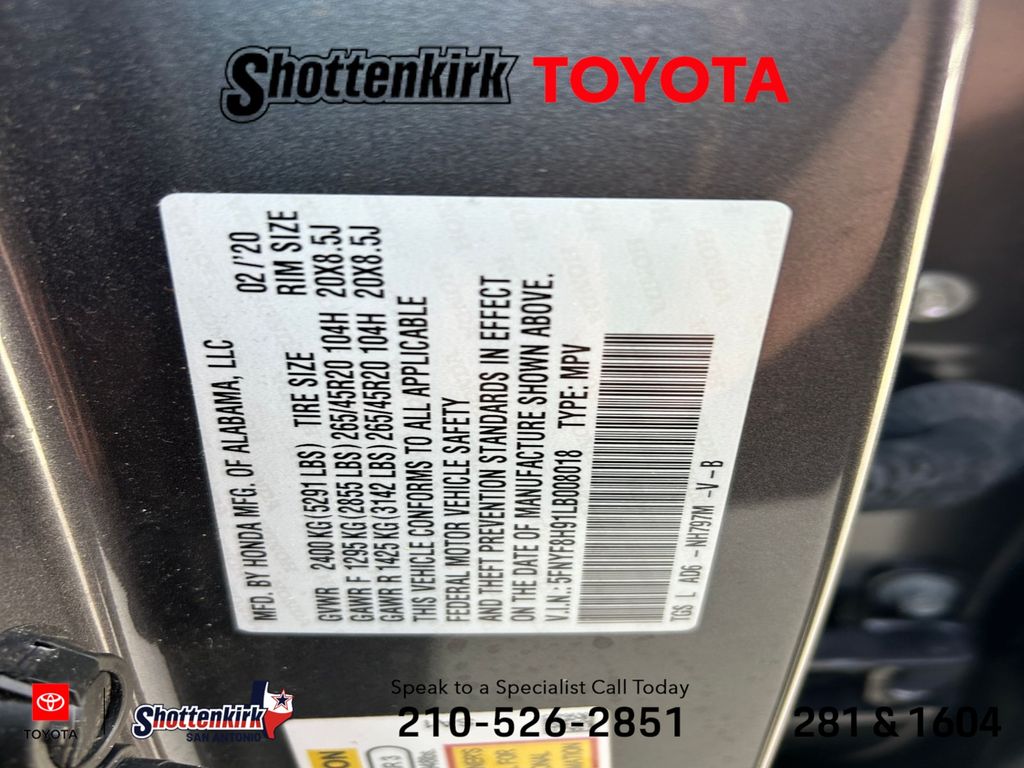 CARFAX One-Owner. Clean CARFAX. 10 Speakers, 4-Wheel Disc Brakes, 4.334 Axle Ratio, A/V remote: CabinControl, ABS brakes, Air Conditioning, Alloy wheels, AM/FM radio: SiriusXM, Apple CarPlay/Android Auto, Auto High-beam Headlights, Auto-dimming door mirrors, Auto-dimming Rear-View mirror, Automatic temperature control, Blind Spot Information (BSI) System warning, Brake assist, Bumpers: body-color, Compass, Delay-off headlights, Driver door bin, Driver vanity mirror, Driver's Seat Mounted Armrest, Dual front impact airbags, Dual front side impact airbags, Electronic Stability Control, Emergency communication system: HondaLink, Exterior Parking Camera Rear, Forward collision: Collision Mitigation Braking System (CMBS) + FCW mitigation, Four wheel independent suspension, Front anti-roll bar, Front Bucket Seats, Front Center Armrest, Front dual zone A/C, Front fog lights, Front reading lights, Fully automatic headlights, Garage door transmitter: HomeLink, Heated door mirrors, Heated Front Bucket Seats, Heated front seats, Heated rear seats, Illuminated entry, Lane departure: Lane Keeping Assist System (LKAS) active, Leather-Trimmed Seats, Low tire pressure warning, Memory seat, Navigation system: Honda Satellite-Linked Navigation System, Occupant sensing airbag, Outside temperature display, Overhead airbag, Overhead console, Panic alarm, Passenger door bin, Passenger seat mounted armrest, Passenger vanity mirror, Power door mirrors, Power driver seat, Power Liftgate, Power moonroof, Power passenger seat, Power steering, Power windows, Radio data system, Radio: 540-Watt Premium Audio System w/10 Speakers, Rear air conditioning, Rear anti-roll bar, Rear reading lights, Rear seat center armrest, Rear window defroster, Rear window wiper, Remote keyless entry, Roof rack: rails only, Security system, Speed control, Speed-sensing steering, Split folding rear seat, Spoiler, Steering wheel mounted audio controls, Tachometer, Telescoping steering wheel, Tilt steering wheel, Traction control, Trip computer, Turn signal indicator mirrors, Variably intermittent wipers, Wheels: 20" Solid-Spoke Pewter Gray Alloy.