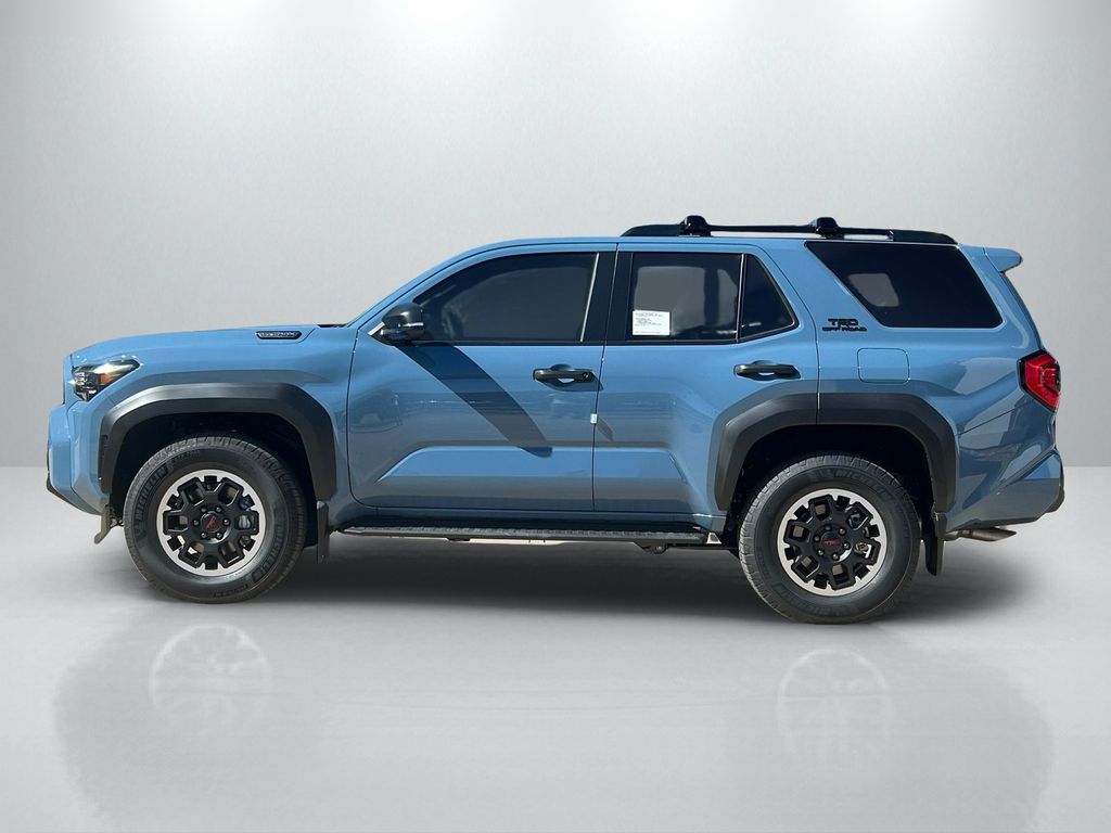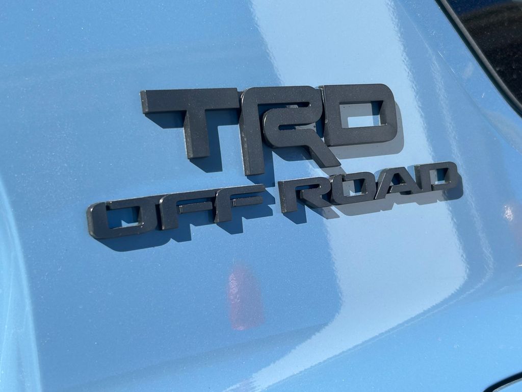 - Black honeycomb-style grille, mirror caps, door handles, and overfenders; color-keyed rear spoiler; black "TRD OFF ROAD" and "4RUNNER" badges