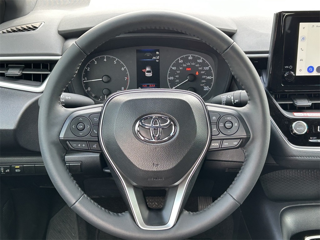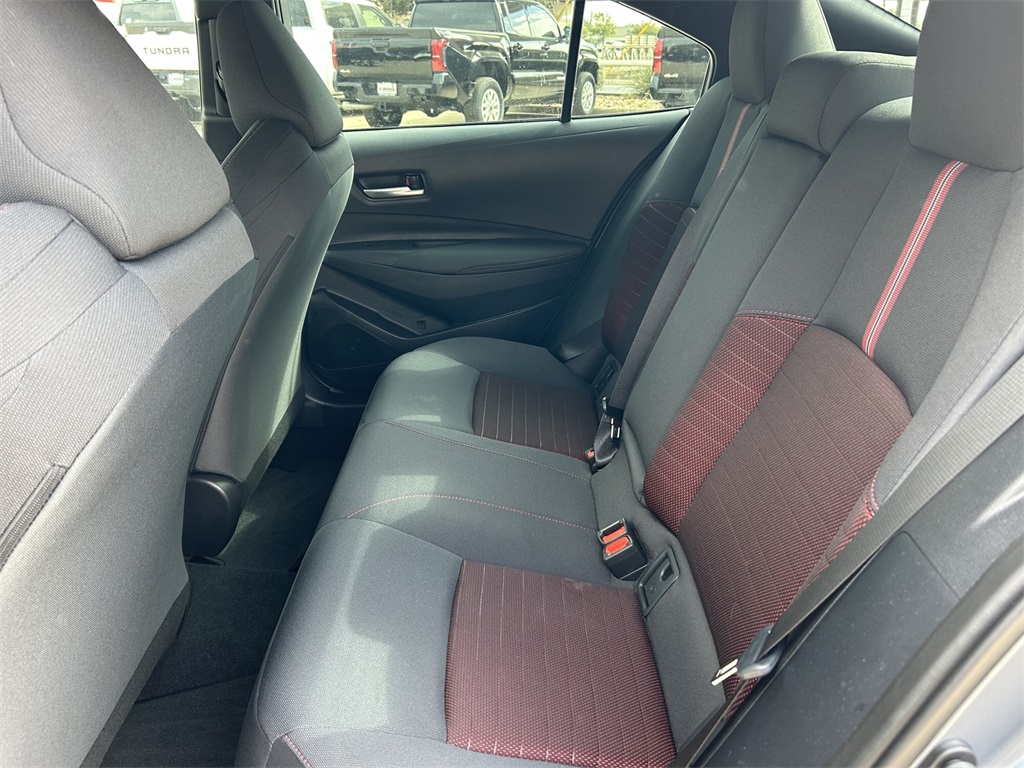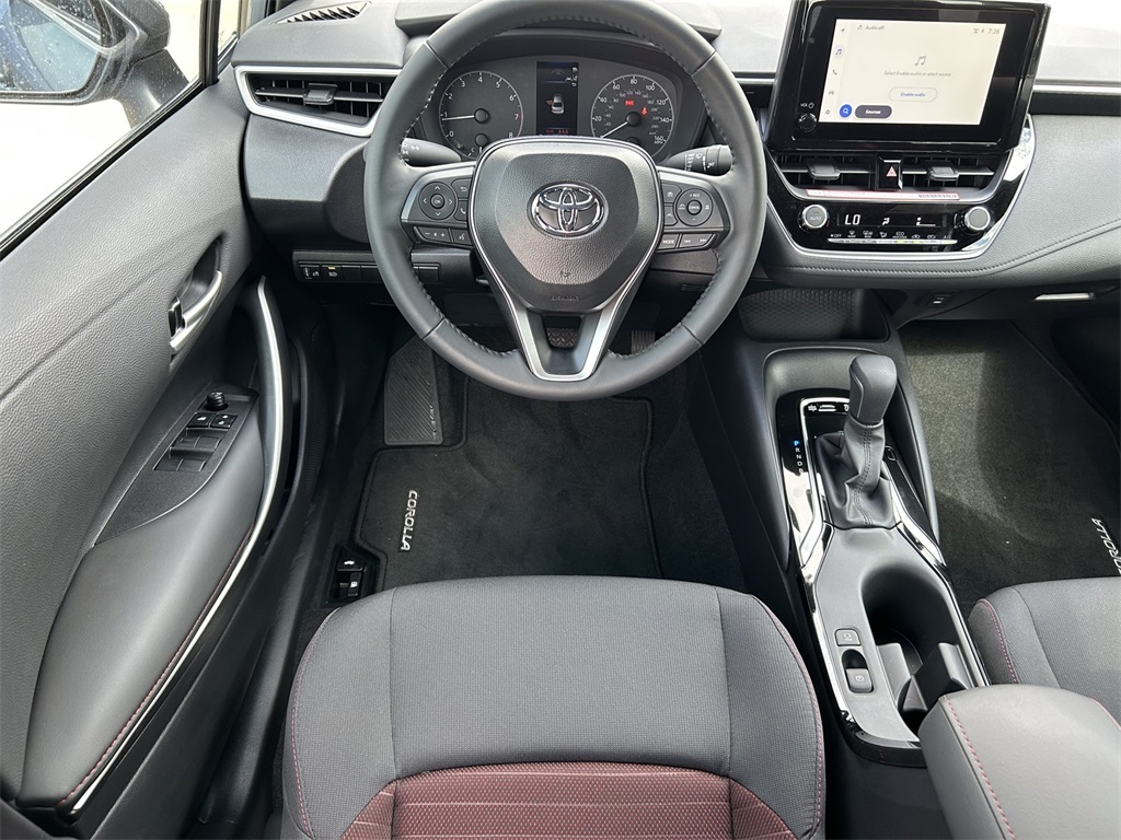 2025 Toyota Corolla SE 4-Wheel Disc Brakes, 6 Speakers, ABS brakes, Air Conditioning, Alloy wheels, AM/FM radio: SiriusXM, Apple CarPlay/Android Auto, Auto High-beam Headlights, Automatic temperature control, Brake assist, Bumpers: body-color, Delay-off headlights, Driver door bin, Driver vanity mirror, Dual front impact airbags, Dual front side impact airbags, Electronic Stability Control, Emergency communication system: Safety Connect (up to 10-year trial subscription), Exterior Parking Camera Rear, Fabric Seat Trim, Four wheel independent suspension, Front anti-roll bar, Front Bucket Seats, Front Center Armrest, Front reading lights, Front Sport Seats, Fully automatic headlights, Heated door mirrors, Illuminated entry, Knee airbag, Leather steering wheel, Low tire pressure warning, Occupant sensing airbag, Outside temperature display, Overhead airbag, Panic alarm, Passenger door bin, Passenger vanity mirror, Power door mirrors, Power steering, Power windows, Radio data system, Radio: 8" Toyota Audio Multimedia, Rear anti-roll bar, Rear seat center armrest, Rear side impact airbag, Rear window defroster, Remote keyless entry, Speed control, Split folding rear seat, Spoiler, Steering wheel mounted audio controls, Tachometer, Telescoping steering wheel, Tilt steering wheel, Traction control, Trip computer, Turn signal indicator mirrors, Variably intermittent wipers, Wheels: 18" Alloy w/Graphite-Colored Finish. 31/40 City/Highway MPG