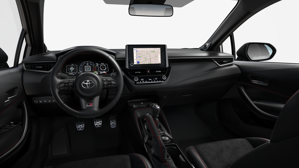 2025 Toyota GR Corolla Premium 4-Wheel Disc Brakes, 8 Speakers, ABS brakes, Air Conditioning, Alloy wheels, AM/FM radio: SiriusXM, Apple CarPlay/Android Auto, Auto High-beam Headlights, Automatic temperature control, Brake assist, Brin Naub & Synthetic Leather Seat Trim, Bumpers: body-color, Compass, Delay-off headlights, Driver door bin, Driver vanity mirror, Dual front impact airbags, Dual front side impact airbags, Electronic Stability Control, Emergency communication system: Safety Connect (up to 10-year trial subscription), Exterior Parking Camera Rear, Four wheel independent suspension, Front anti-roll bar, Front Bucket Seats, Front dual zone A/C, Front reading lights, Fully automatic headlights, Heads-Up Display, Heated front seats, Heated Sport Front Seats, Heated steering wheel, Illuminated entry, Knee airbag, Leather Shift Knob, Leather steering wheel, Low tire pressure warning, Navigation system: Drive Connect Cloud Navigation (1-year trial subscription), Occupant sensing airbag, Outside temperature display, Overhead airbag, Overhead console, Panic alarm, Passenger door bin, Passenger vanity mirror, Power door mirrors, Power steering, Power windows, Premium Plus, Radio data system, Radio: Toyota Audio Multimedia w/8 JBL Speakers, Rear anti-roll bar, Rear seat center armrest, Rear side impact airbag, Rear window defroster, Rear window wiper, Remote keyless entry, Security system, Speed control, Speed-sensing steering, Split folding rear seat, Spoiler, Sport steering wheel, Steering wheel mounted audio controls, Tachometer, Telescoping steering wheel, Tilt steering wheel, Traction control, Trip computer, Turn signal indicator mirrors, Variably intermittent wipers, Wheels: 18" Matte Black 15-Spoke Cast Alloy. 21/28 City/Highway MPG