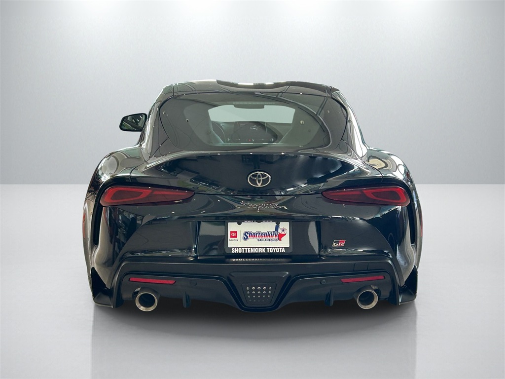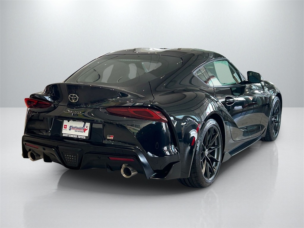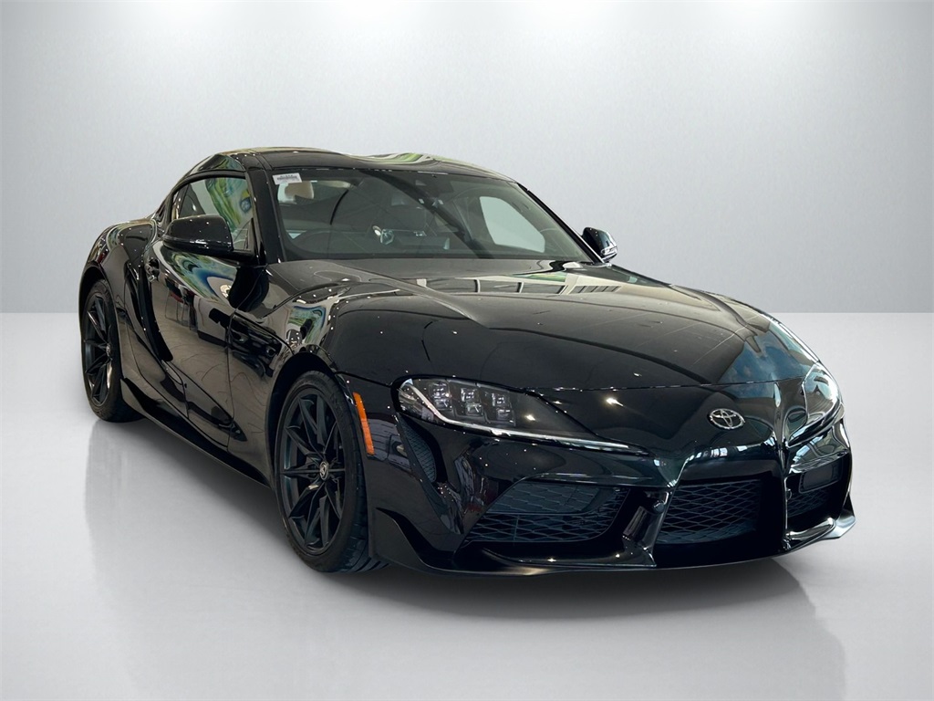 2025 Toyota GR Supra 3.0 10 Speakers, 4-Wheel Disc Brakes, ABS brakes, Adaptive suspension, Air Conditioning, Alcantara/Leather Seat Trim, Alloy wheels, AM/FM radio: SiriusXM, Auto High-beam Headlights, Auto-dimming door mirrors, Auto-dimming Rear-View mirror, Automatic temperature control, Blind Spot Monitor (BSM), Brake assist, Bumpers: body-color, Child-Seat-Sensing Airbag, Delay-off headlights, Driver door bin, Driver vanity mirror, Dual front impact airbags, Dual front side impact airbags, Electronic Stability Control, Exterior Parking Camera Rear, Four wheel independent suspension, Front anti-roll bar, Front Bucket Seats, Front Center Armrest, Front dual zone A/C, Front reading lights, Full Speed Dynamic Radar Cruise Control, Fully automatic headlights, Garage door transmitter: HomeLink, Heated door mirrors, Heated front seats, Heated Front Sport Seats, Illuminated entry, Knee airbag, Leather Shift Knob, Leather steering wheel, Low tire pressure warning, Memory seat, Navigation System, Occupant sensing airbag, Outside temperature display, Overhead airbag, Panic alarm, Parking Sensors w/Emergency Braking Function, Passenger door bin, Passenger vanity mirror, Power door mirrors, Power driver seat, Power passenger seat, Power steering, Power windows, Radio data system, Radio: Supra Command, Radio: Supra Command w/JBL, Rain sensing wipers, Rear anti-roll bar, Rear Cross Traffic Alert (RCTA), Rear window defroster, Remote keyless entry, Safety & Technology Package Plus JBL, Security system, Speed control, Speed Limit Information, Speed-sensing steering, Speed-Sensitive Wipers, Steering wheel mounted audio controls, Supra Connected Services, Tachometer, Telescoping steering wheel, Tilt steering wheel, Traction control, Trip computer, Turn signal indicator mirrors, Variably intermittent wipers, Wheels: 19" Frozen Gunmetal Gray Forged-Aluminum. 23/31 City/Highway MPG