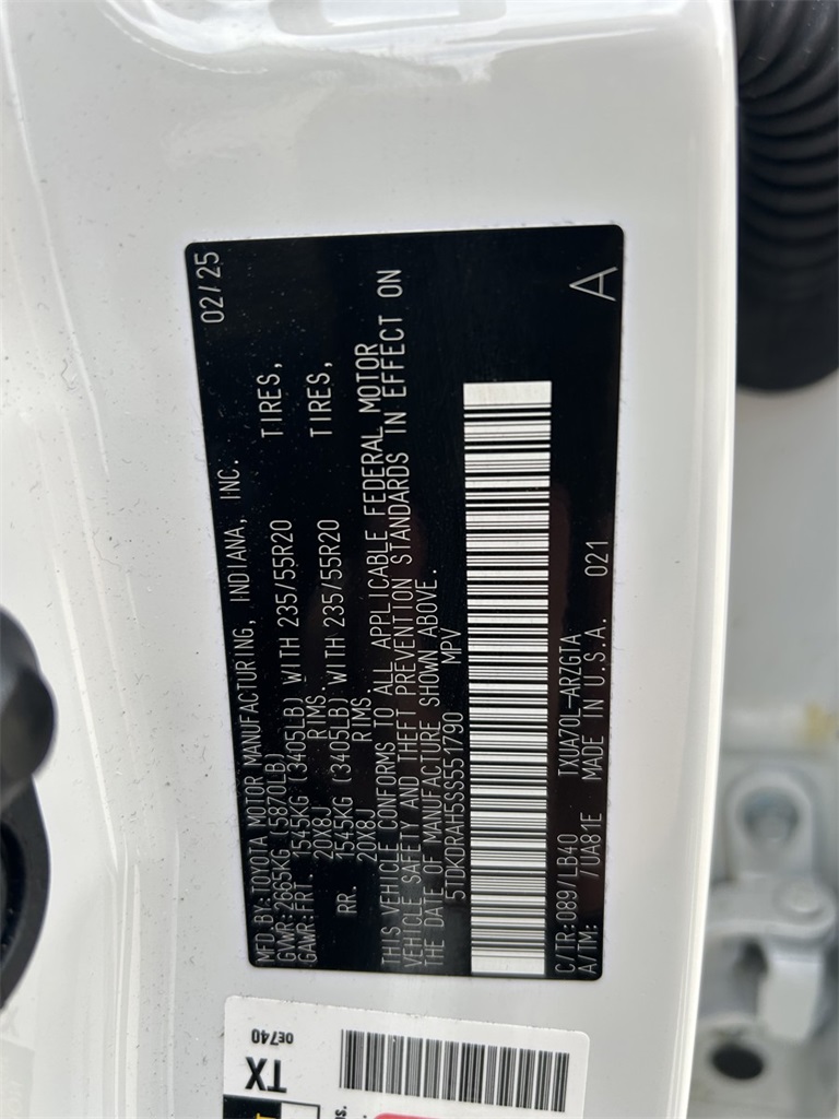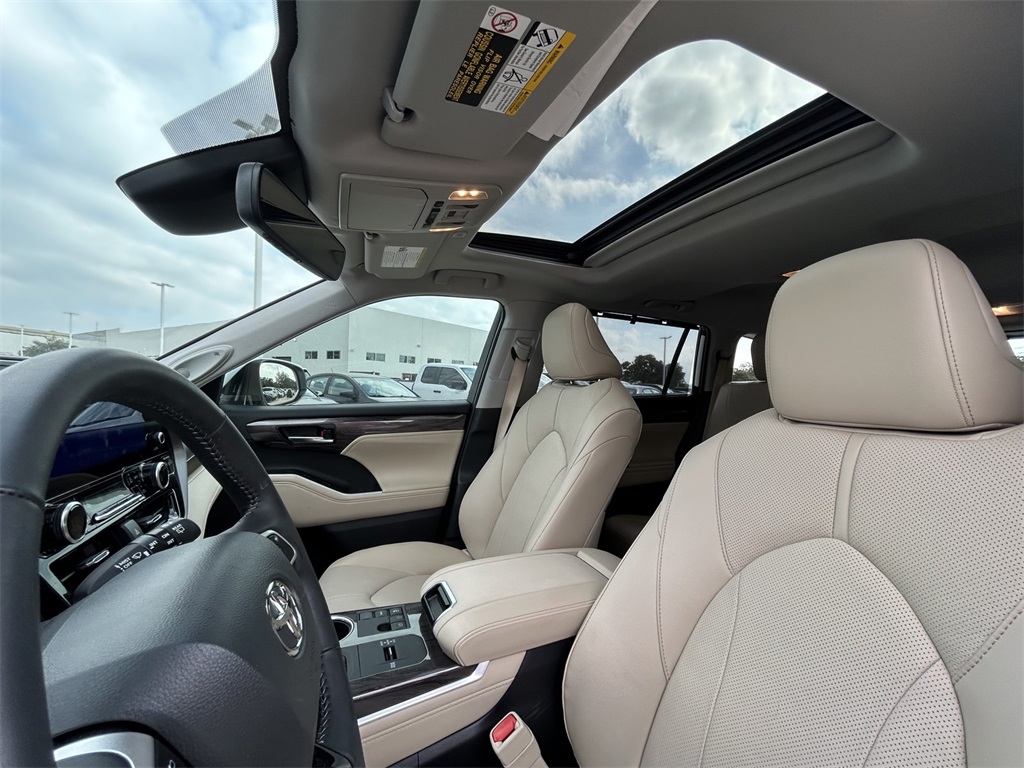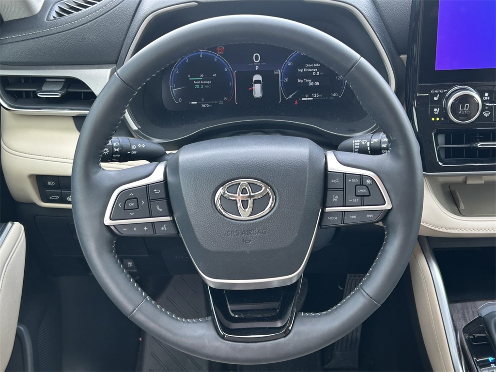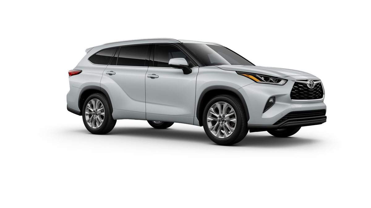 2025 Toyota Highlander Limited 11 Speakers, 3rd row seats: split-bench, 4-Wheel Disc Brakes, ABS brakes, Air Conditioning, Alloy wheels, AM/FM radio: SiriusXM, Apple CarPlay/Android Auto, Auto High-beam Headlights, Auto-dimming Rear-View mirror, Automatic temperature control, Brake assist, Bumpers: body-color, Chrome wheels, Delay-off headlights, Driver door bin, Driver vanity mirror, Dual front impact airbags, Dual front side impact airbags, Electronic Stability Control, Emergency communication system: Safety Connect (up to 10-year trial subscription), Exterior Parking Camera Rear, Four wheel independent suspension, Front anti-roll bar, Front Bucket Seats, Front Center Armrest, Front dual zone A/C, Front fog lights, Front reading lights, Fully automatic headlights, Garage door transmitter: HomeLink, Heated and Ventilated Front Bucket Seats, Heated door mirrors, Heated front seats, Heated steering wheel, Illuminated entry, Knee airbag, Leather Seat Trim, Leather Shift Knob, Leather steering wheel, Low tire pressure warning, Memory seat, Navigation system: Drive Connect Cloud Navigation (1-year trial subscription), Occupant sensing airbag, Outside temperature display, Overhead airbag, Overhead console, Panic alarm, Passenger door bin, Passenger vanity mirror, Power door mirrors, Power driver seat, Power Liftgate, Power moonroof, Power passenger seat, Power steering, Power windows, Radio: 12.3" Toyota Audio Multimedia with JBL Premium Audio, Rear air conditioning, Rear anti-roll bar, Rear reading lights, Rear window defroster, Rear window wiper, Reclining 3rd row seat, Remote keyless entry, Security system, Speed control, Speed-sensing steering, Split folding rear seat, Spoiler, Steering wheel mounted audio controls, Tachometer, Telescoping steering wheel, Tilt steering wheel, Traction control, Trip computer, Turn signal indicator mirrors, Variably intermittent wipers, Ventilated front seats, Wheels: 20" Chrome-Finished Alloy. 22/29 City/Highway MPG