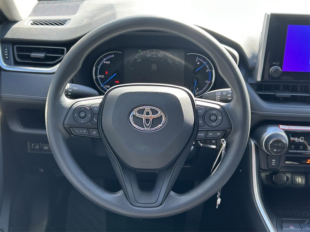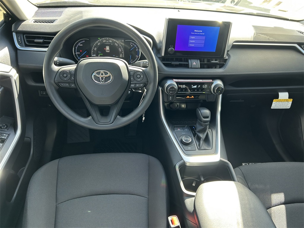 2025 Toyota RAV4 Hybrid LE 2.5L 4-Cylinder, 4-Wheel Disc Brakes, 6 Speakers, ABS brakes, Air Conditioning, Alloy wheels, AM/FM radio: SiriusXM, Auto High-beam Headlights, Automatic temperature control, Brake assist, Bumpers: body-color, Driver door bin, Driver vanity mirror, Dual front impact airbags, Dual front side impact airbags, Electronic Stability Control, Emergency communication system: Safety Connect (1-year trial), Exterior Parking Camera Rear, Fabric Seat Trim, Four wheel independent suspension, Front anti-roll bar, Front Bucket Seats, Front Center Armrest, Front dual zone A/C, Front reading lights, Illuminated entry, Knee airbag, Low tire pressure warning, Occupant sensing airbag, Outside temperature display, Overhead airbag, Overhead console, Panic alarm, Passenger door bin, Passenger vanity mirror, Power door mirrors, Power steering, Power windows, Radio data system, Radio: AM/FM/XM Audio System, Rear anti-roll bar, Rear seat center armrest, Rear window defroster, Rear window wiper, Remote keyless entry, Speed control, Speed-sensing steering, Split folding rear seat, Spoiler, Steering wheel mounted audio controls, Telescoping steering wheel, Tilt steering wheel, Traction control, Trip computer, Wheels: 17" x 7.0J Silver Aluminum Alloy. 41/38 City/Highway MPG