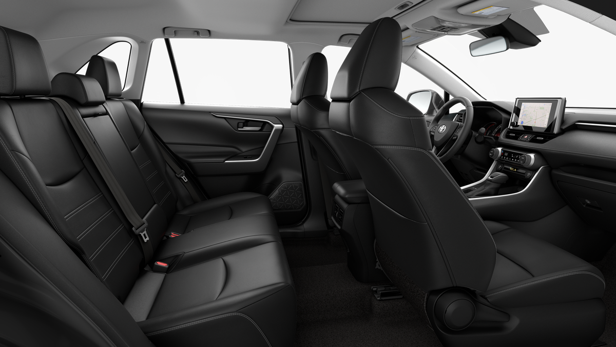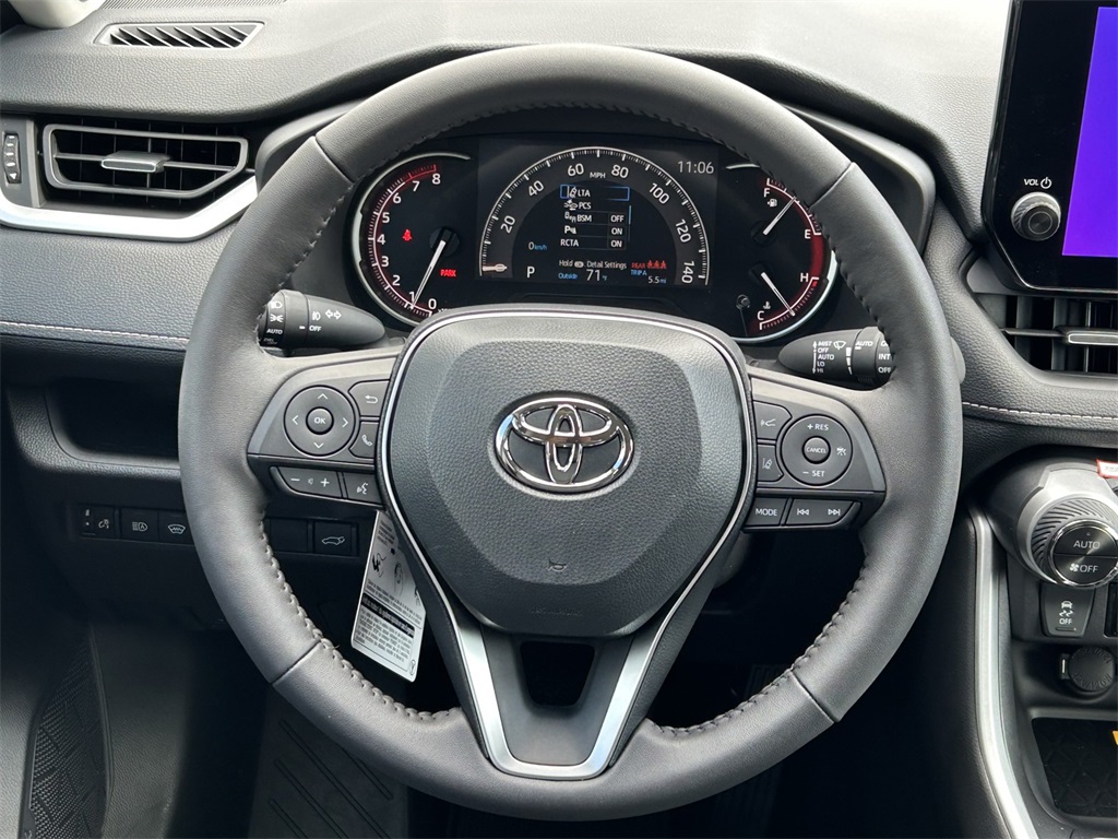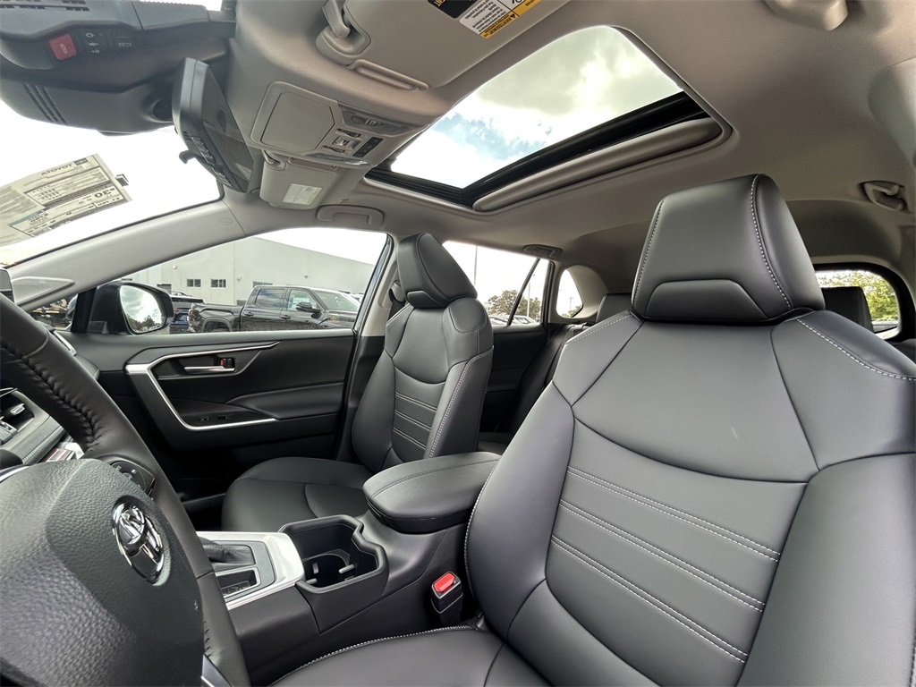 2025 Toyota RAV4 XLE Premium Black w/SofTex Seat Trim, 3 Spoke Leather Heated Steering Wheel, 3 Spoke Leather Steering Wheel, 4-Wheel Disc Brakes, 6 Speakers, ABS brakes, Advanced Technology Package, Air Conditioning, Alloy wheels, AM/FM radio: SiriusXM, Anti-Theft System, Auto High-beam Headlights, Automatic temperature control, Blind Spot Monitor w/Lane Change Assist, Brake assist, Bumpers: body-color, Delay-off headlights, Driver door bin, Driver Seat w/2-Position Memory Function, Driver vanity mirror, Dual front impact airbags, Dual front side impact airbags, Electronic Inside Rear View Mirror, Electronic Stability Control, Emergency communication system: Safety Connect (10-year trial), Exterior Parking Camera Rear, Four wheel independent suspension, Front anti-roll bar, Front Bucket Seats, Front Center Armrest, Front dual zone A/C, Front reading lights, Front Seat Heating, Fully automatic headlights, Heated door mirrors, Illuminated entry, Intelligent Clearance Sonar, Knee airbag, Leather Shift Knob, Leather steering wheel, Low tire pressure warning, Occupant sensing airbag, Outside temperature display, Overhead airbag, Overhead console, Panic alarm, Parking Support Alert & Brake, Passenger door bin, Passenger vanity mirror, Power door mirrors, Power driver seat, Power Liftgate, Power moonroof, Power steering, Power windows, Radio data system, Radio: AM/FM/XM Audio System, Rear anti-roll bar, Rear seat center armrest, Rear window defroster, Rear window wiper, Remote keyless entry, SofTex Seat Trim, Speed control, Speed-sensing steering, Split folding rear seat, Spoiler, Steering wheel mounted audio controls, Tachometer, Telescoping steering wheel, Tilt steering wheel, Traction control, Trip computer, Turn signal indicator mirrors, Variably intermittent wipers, Weather Package, Wheels: 19" 5-Spoke Silver Alloy, Wireless Phone Charger, XLE Premium Package. 27/35 City/Highway MPG