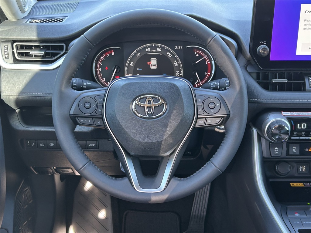2025 Toyota RAV4 XLE Premium Black w/SofTex Seat Trim, 3 Spoke Leather Heated Steering Wheel, 3 Spoke Leather Steering Wheel, 4-Wheel Disc Brakes, 6 Speakers, ABS brakes, Advanced Technology Package, Air Conditioning, Alloy wheels, AM/FM radio: SiriusXM, Anti-Theft System, Auto High-beam Headlights, Automatic temperature control, Blind Spot Monitor w/Lane Change Assist, Brake assist, Bumpers: body-color, Delay-off headlights, Driver door bin, Driver Seat w/2-Position Memory Function, Driver vanity mirror, Dual front impact airbags, Dual front side impact airbags, Electronic Inside Rear View Mirror, Electronic Stability Control, Emergency communication system: Safety Connect (10-year trial), Exterior Parking Camera Rear, Four wheel independent suspension, Front anti-roll bar, Front Bucket Seats, Front Center Armrest, Front dual zone A/C, Front reading lights, Front Seat Heating, Fully automatic headlights, Heated door mirrors, Illuminated entry, Intelligent Clearance Sonar, Knee airbag, Leather Shift Knob, Leather steering wheel, Low tire pressure warning, Occupant sensing airbag, Outside temperature display, Overhead airbag, Overhead console, Panic alarm, Parking Support Alert & Brake, Passenger door bin, Passenger vanity mirror, Power door mirrors, Power driver seat, Power Liftgate, Power moonroof, Power steering, Power windows, Radio data system, Radio: AM/FM/XM Audio System, Rear anti-roll bar, Rear seat center armrest, Rear window defroster, Rear window wiper, Remote keyless entry, SofTex Seat Trim, Speed control, Speed-sensing steering, Split folding rear seat, Spoiler, Steering wheel mounted audio controls, Tachometer, Telescoping steering wheel, Tilt steering wheel, Traction control, Trip computer, Turn signal indicator mirrors, Variably intermittent wipers, Weather Package, Wheels: 19" 5-Spoke Silver Alloy, Wireless Phone Charger, XLE Premium Package. 27/35 City/Highway MPG