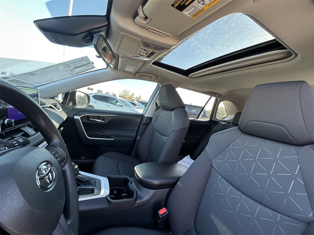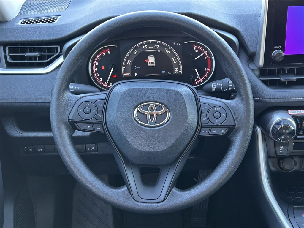 2025 Toyota RAV4 XLE Black w/Fabric Seat Trim, 4-Wheel Disc Brakes, 6 Speakers, ABS brakes, Air Conditioning, Alloy wheels, AM/FM radio: SiriusXM, Auto High-beam Headlights, Automatic temperature control, Brake assist, Bumpers: body-color, Convenience Package, Delay-off headlights, Driver door bin, Driver vanity mirror, Dual front impact airbags, Dual front side impact airbags, Electronic Stability Control, Emergency communication system: Safety Connect (10-year trial), Exterior Parking Camera Rear, Fabric Seat Trim, Four wheel independent suspension, Front anti-roll bar, Front Bucket Seats, Front Center Armrest, Front Door Smart Key System w/Push Button Start, Front dual zone A/C, Front reading lights, Fully automatic headlights, Heated door mirrors, Illuminated entry, Knee airbag, Low tire pressure warning, Occupant sensing airbag, Outside temperature display, Overhead airbag, Overhead console, Panic alarm, Passenger door bin, Passenger vanity mirror, Power door mirrors, Power driver seat, Power steering, Power windows, Radio data system, Radio: AM/FM/XM Audio System, Rear anti-roll bar, Rear seat center armrest, Rear window defroster, Rear window wiper, Remote keyless entry, Speed control, Speed-sensing steering, Split folding rear seat, Spoiler, Steering wheel mounted audio controls, Tachometer, Telescoping steering wheel, Tilt & Slide Moon Roof, Tilt steering wheel, Traction control, Trip computer, Turn signal indicator mirrors, Variably intermittent wipers, Wheels: 17" 5-Spoke Silver Alloy. 27/35 City/Highway MPG