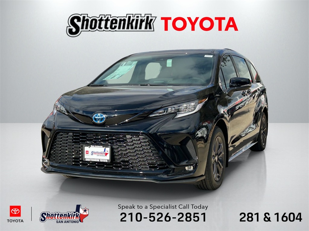 2025 Toyota Sienna XSE AWD, 1500W Inverter Output, 3rd row seats: split-bench, 4-Wheel Disc Brakes, 8 Speakers, ABS brakes, Air Conditioning, Alloy wheels, AM/FM radio: SiriusXM, Apple CarPlay/Android Auto, Auto High-beam Headlights, Auto-dimming door mirrors, Auto-dimming Rear-View mirror, Axle Ratio: TBD, Brake assist, Bumpers: body-color, Compass, Delay-off headlights, Driver door bin, Driver vanity mirror, Driver's Seat Mounted Armrest, Dual front impact airbags, Dual front side impact airbags, Electronic Stability Control, Emergency communication system: Safety Connect (3-year trial), Exterior Parking Camera Rear, Four wheel independent suspension, Front anti-roll bar, Front Bucket Seats, Front dual zone A/C, Front fog lights, Front Heated Bucket Seats, Front Heated/Ventilated Seats w/Orange Stitching, Front reading lights, Fully automatic headlights, Garage door transmitter: HomeLink, Heated door mirrors, Heated front seats, Heated Power-Adjustable Auto-Dimming Mirrors, Illuminated entry, Knee airbag, Lane Departure Warning System, Leather Shift Knob, Leather steering wheel, Leather-Wrapped Steering Wheel, Low tire pressure warning, Navigation System, Occupant sensing airbag, Outside temperature display, Overhead airbag, Overhead console, Panic alarm, Passenger door bin, Passenger seat mounted armrest, Passenger vanity mirror, Power door mirrors, Power driver seat, Power Liftgate, Power moonroof, Power passenger seat, Power steering, Power windows, Radio data system, Radio: JBL Audio w/Navigation, Radio: Toyota Audio Multimedia w/Navigation, Rear air conditioning, Rear anti-roll bar, Rear dual zone A/C, Rear reading lights, Rear side impact airbag, Rear window defroster, Rear window wiper, Rear-Seat Entertainment, Reclining 3rd row seat, Remote keyless entry, Roof Rails, Second & Third-Row Sunshades, SofTex Seat Trim, Speed control, Speed-sensing steering, Split folding rear seat, Spoiler, Steering wheel mounted audio controls, Tachometer, Telescoping steering wheel, Tilt steering wheel, Traction control, Trip computer, Turn signal indicator mirrors, Variably intermittent wipers, Wheels: 18" Dark Alloy, XSE Premium Package. 34/36 City/Highway MPGHere at Toyota San Antonio we offer game changing prices and a game changing buying experience. We deliver! Ask about our Toyota Express Buying Program! 1604 & 281.Welcome to Shottenkirk Toyota,. Here at Shottenkirk, we build relationships based on trust and integrity to exceed your expectations in your ownership experience. Quite simply, we strive to Make Confidence Happen! So stop by and allow us to serve your automotive needs; we would love to meet you. Joining the ToyotaCare1 family ensures that your vehicle is maintained with Toyota Genuine Parts and serviced by factory trained Toyota technicians. That's why we include a maintenance plan with the purchase or lease of every new Toyota vehicle, for 2 years or 25,000 miles, whichever comes first.