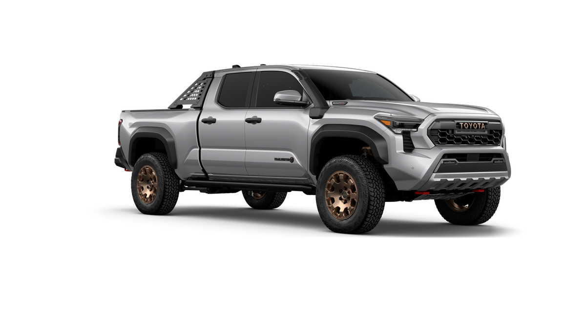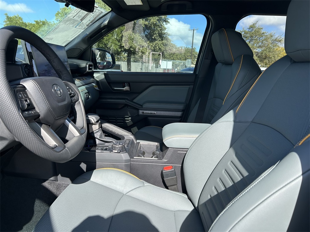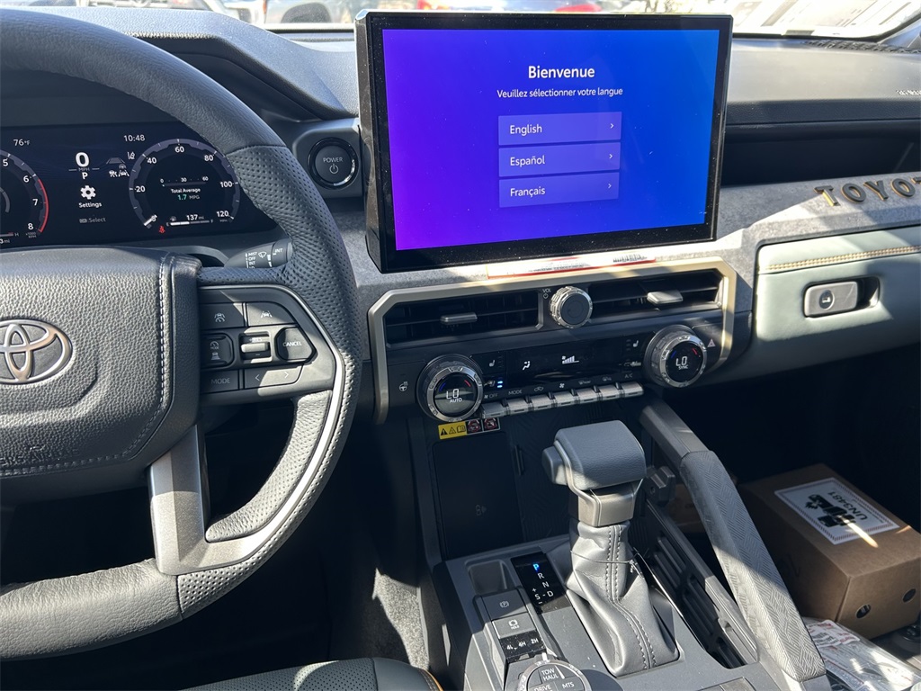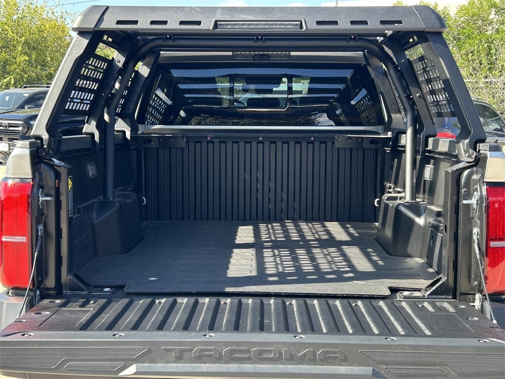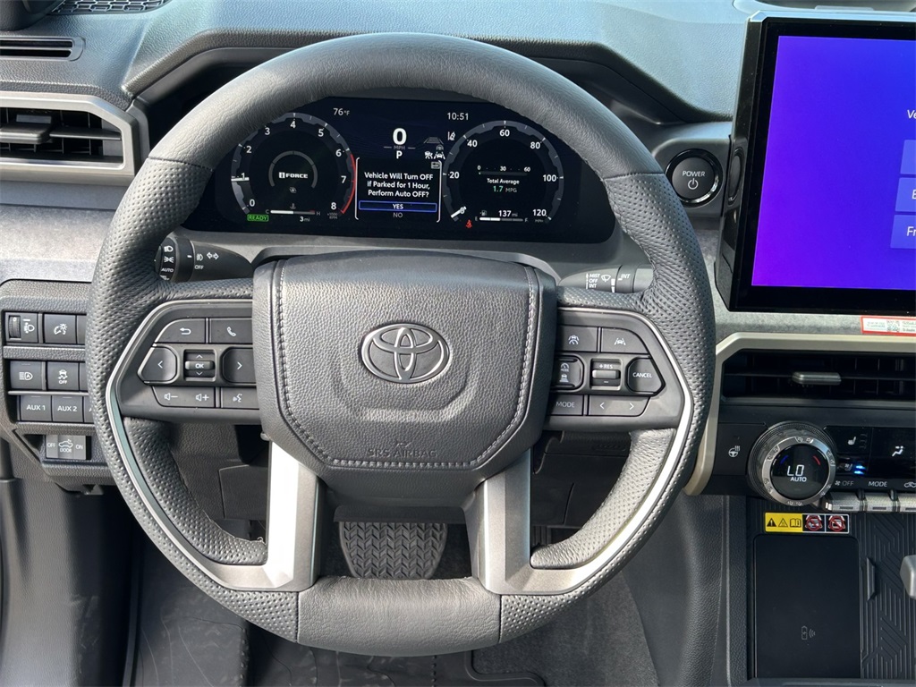 2025 Toyota Tacoma Hybrid Trailhunter 2.4L I4 PDI Hybrid Turbocharged DOHC 16V, 3.583 Axle Ratio, 4-Wheel Disc Brakes, 9 Speakers, ABS brakes, Air Conditioning, Alloy wheels, AM/FM radio: SiriusXM, Anti-whiplash front head restraints, Apple CarPlay/Android Auto, ARB Bed Rack HD Kit w/Molle Panels (TMS), Auto High-beam Headlights, Auto-dimming Rear-View mirror, Automatic temperature control, Bed Mat (TMS), Brake assist, Bumpers: body-color, Driver door bin, Driver vanity mirror, Dual front impact airbags, Dual front side impact airbags, Electronic Stability Control, Emergency communication system: Safety Connect (1-year trial), Exterior Parking Camera Rear, Four wheel independent suspension, Front anti-roll bar, Front Bucket Seats, Front Center Armrest, Front dual zone A/C, Front fog lights, Front reading lights, Fully automatic headlights, Garage door transmitter: HomeLink, Heads-Up Display, Heated & Ventilated Front Bucket Seats, Heated door mirrors, Heated front seats, Heated steering wheel, Illuminated entry, JBL Premium Audio, Knee airbag, Leather Shift Knob, Leather steering wheel, Low tire pressure warning, Navigation system: Drive Connect (1 year trial) includes Cloud Navigation with real time traffic and Google POI, Occupant sensing airbag, Outside temperature display, Overhead airbag, Overhead console, Panic alarm, Passenger door bin, Passenger vanity mirror, Power door mirrors, Power driver seat, Power passenger seat, Power steering, Power windows, Radio: 14" Toyota Audio Multimedia, Rear anti-roll bar, Rear step bumper, Rear window defroster, Remote keyless entry, Roof Rack (TMS), Security system, SofTex Seat Trim, Speed control, Speed-sensing steering, Split folding rear seat, Steering wheel mounted audio controls, Tachometer, Telescoping steering wheel, Tilt steering wheel, Tow Tech Package, Traction control, Trailhunter Package, Trip computer, Turn signal indicator mirrors, Variably intermittent wipers, Ventilated front seats, Wheels: 18" Bronze-Finished Trailhunter Alloy.