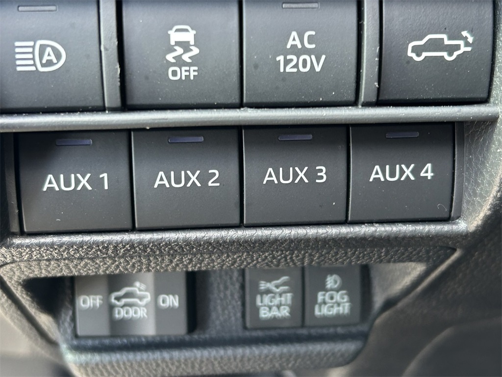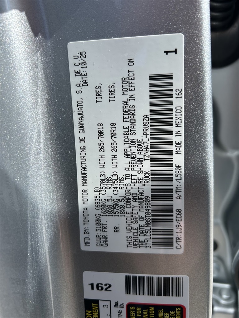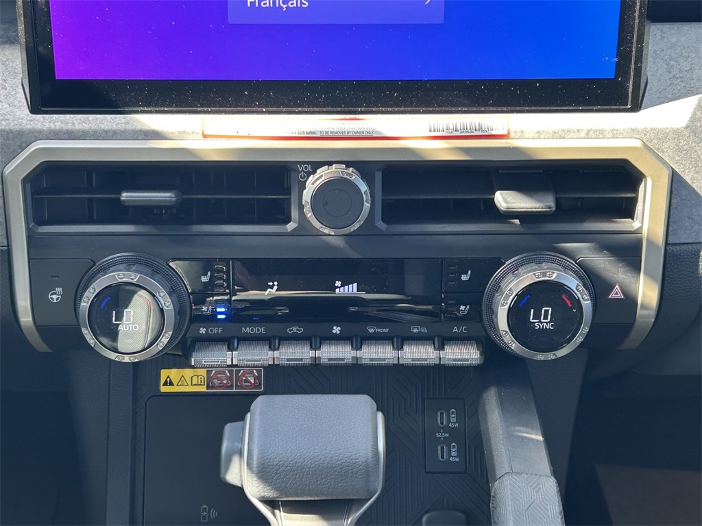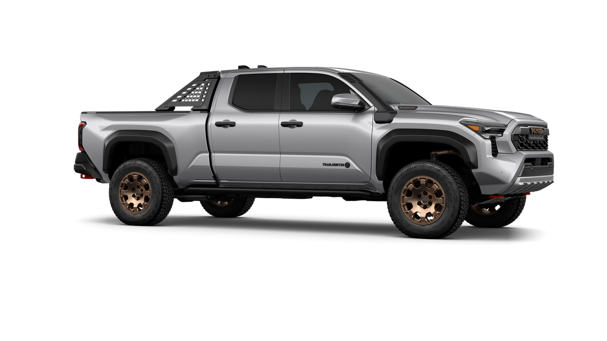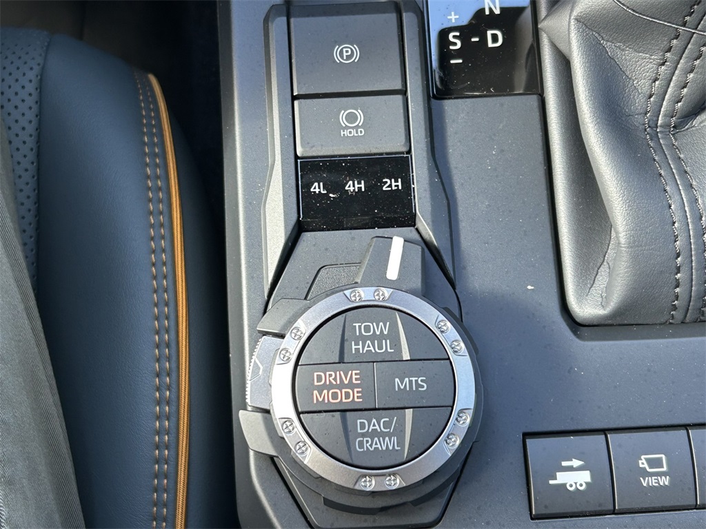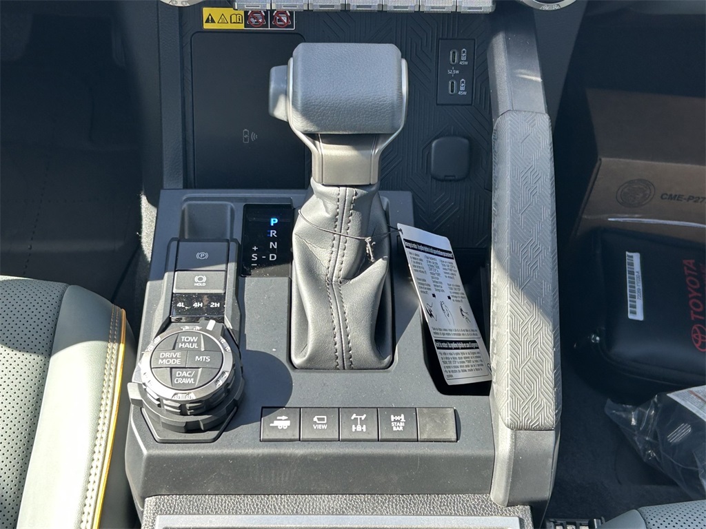 2025 Toyota Tacoma Hybrid Trailhunter 2.4L I4 PDI Hybrid Turbocharged DOHC 16V, 3.583 Axle Ratio, 4-Wheel Disc Brakes, 9 Speakers, ABS brakes, Air Conditioning, Alloy wheels, AM/FM radio: SiriusXM, Anti-whiplash front head restraints, Apple CarPlay/Android Auto, ARB Bed Rack HD Kit w/Molle Panels (TMS), Auto High-beam Headlights, Auto-dimming Rear-View mirror, Automatic temperature control, Bed Mat (TMS), Brake assist, Bumpers: body-color, Driver door bin, Driver vanity mirror, Dual front impact airbags, Dual front side impact airbags, Electronic Stability Control, Emergency communication system: Safety Connect (1-year trial), Exterior Parking Camera Rear, Four wheel independent suspension, Front anti-roll bar, Front Bucket Seats, Front Center Armrest, Front dual zone A/C, Front fog lights, Front reading lights, Fully automatic headlights, Garage door transmitter: HomeLink, Heads-Up Display, Heated & Ventilated Front Bucket Seats, Heated door mirrors, Heated front seats, Heated steering wheel, Illuminated entry, JBL Premium Audio, Knee airbag, Leather Shift Knob, Leather steering wheel, Low tire pressure warning, Navigation system: Drive Connect (1 year trial) includes Cloud Navigation with real time traffic and Google POI, Occupant sensing airbag, Outside temperature display, Overhead airbag, Overhead console, Panic alarm, Passenger door bin, Passenger vanity mirror, Power door mirrors, Power driver seat, Power passenger seat, Power steering, Power windows, Radio: 14" Toyota Audio Multimedia, Rear anti-roll bar, Rear step bumper, Rear window defroster, Remote keyless entry, Roof Rack (TMS), Security system, SofTex Seat Trim, Speed control, Speed-sensing steering, Split folding rear seat, Steering wheel mounted audio controls, Tachometer, Telescoping steering wheel, Tilt steering wheel, Tow Tech Package, Traction control, Trailhunter Package, Trip computer, Turn signal indicator mirrors, Variably intermittent wipers, Ventilated front seats, Wheels: 18" Bronze-Finished Trailhunter Alloy.