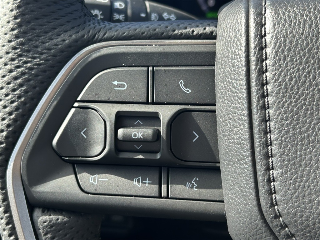 - Leather-trimmed manual tilt/telescopic heated steering wheel with phone, audio, display/infotainment, and Driver Assist controls