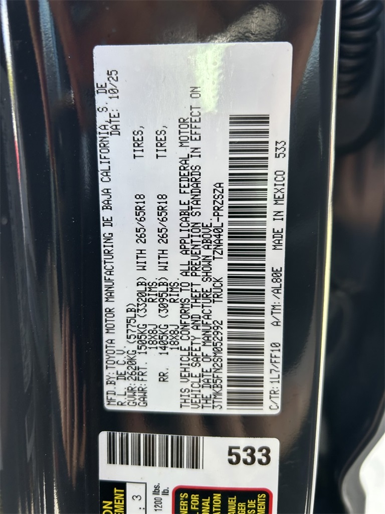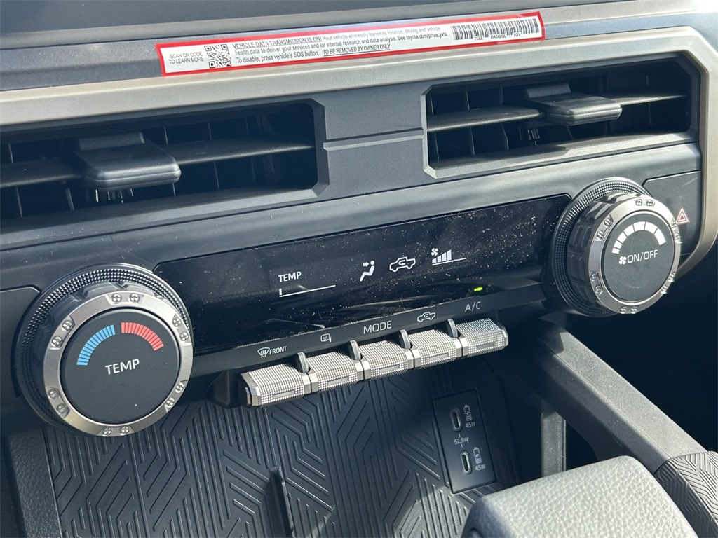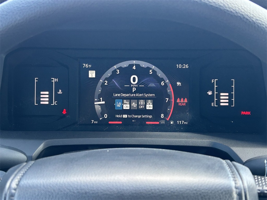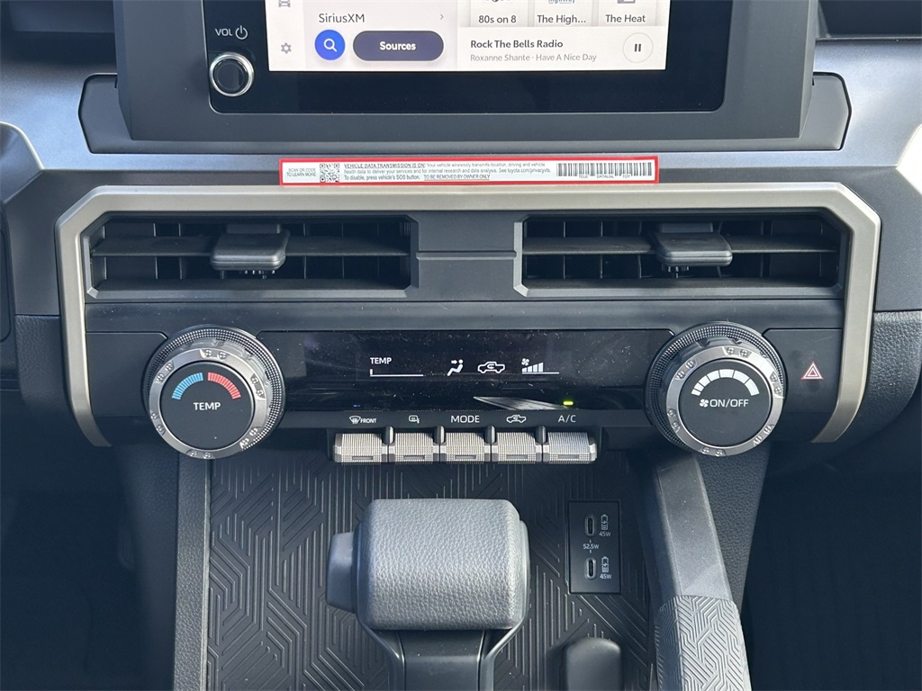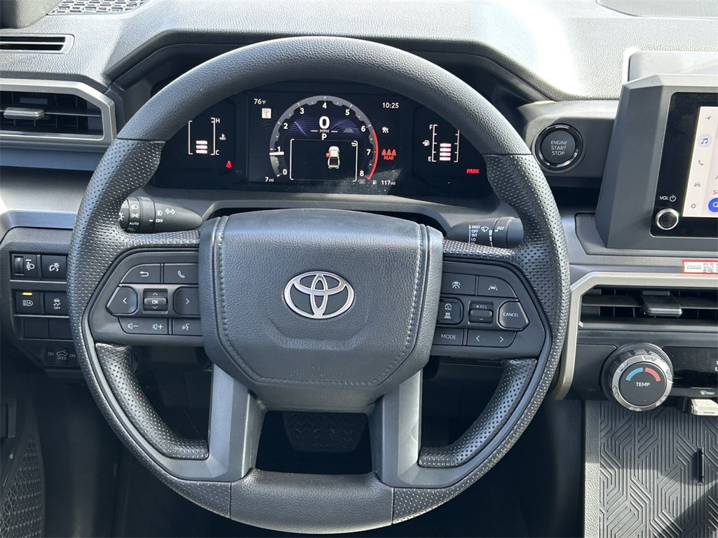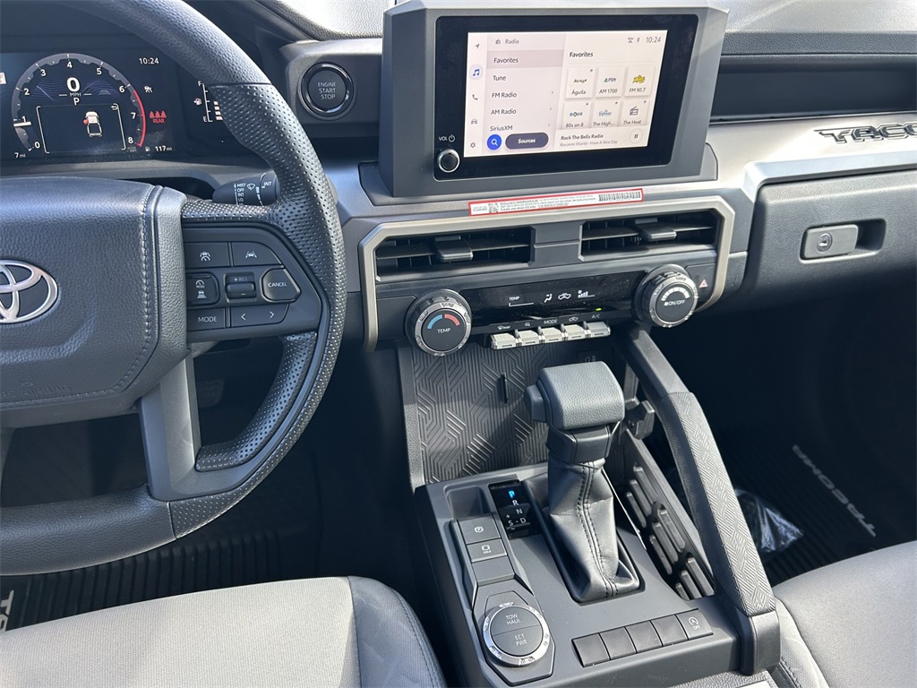 2025 Toyota Tacoma SR5 3.583 Axle Ratio, 4-Wheel Disc Brakes, 6 Speakers, ABS brakes, Air Conditioning, All Weather Floor Liners (TMS), Alloy wheels, AM/FM radio: SiriusXM, Anti-whiplash front head restraints, Apple CarPlay/Android Auto, Auto High-beam Headlights, Auto-dimming Rear-View mirror, Brake assist, Bumpers: body-color, Driver door bin, Dual front impact airbags, Dual front side impact airbags, Electronic Stability Control, Emergency communication system: Safety Connect (1-year trial), Exterior Parking Camera Rear, Fabric Seat Trim, Four wheel independent suspension, Front anti-roll bar, Front Bucket Seats, Front Center Armrest, Front fog lights, Front reading lights, Fully automatic headlights, Heated door mirrors, Illuminated entry, Knee airbag, Low tire pressure warning, Occupant sensing airbag, Outside temperature display, Overhead airbag, Overhead console, Panic alarm, Passenger door bin, Power door mirrors, Power steering, Power windows, Radio: 8" Toyota Audio Multimedia, Rear step bumper, Rear window defroster, Remote keyless entry, Speed control, Speed-sensing steering, Split folding rear seat, Spray-On Bed Liner (TMS), Steering wheel mounted audio controls, Tachometer, Telescoping steering wheel, Tilt steering wheel, Traction control, Trip computer, Variably intermittent wipers, Wheels: 17" Styled Alloy, Wheels: 18" TRD Black (TMS) (PPO). 21/26 City/Highway MPG