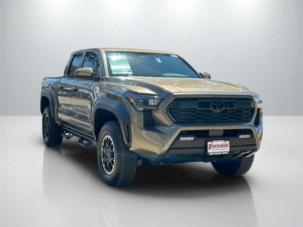 2025 Toyota Tacoma TRD Off-Road 4WD, 3.583 Axle Ratio, 4-Wheel Disc Brakes, 6 Speakers, ABS brakes, Air Conditioning, Alloy wheels, AM/FM radio: SiriusXM, Anti-whiplash front head restraints, Apple CarPlay/Android Auto, ARB Rear Tow Hooks (TMS), Auto High-beam Headlights, Auto-dimming Rear-View mirror, Automatic temperature control, Brake assist, Bumpers: body-color, Driver door bin, Driver vanity mirror, Dual front impact airbags, Dual front side impact airbags, Electronic Stability Control, Emergency communication system: Safety Connect (1-year trial), Exterior Parking Camera Rear, Fabric Seat Trim, Four wheel independent suspension, Front anti-roll bar, Front Bucket Seats, Front Center Armrest, Front fog lights, Front reading lights, Fully automatic headlights, Heated door mirrors, Illuminated entry, JBL Premium Audio, Knee airbag, Leather Shift Knob, Leather steering wheel, Low tire pressure warning, Occupant sensing airbag, Outside temperature display, Overhead airbag, Overhead console, Panic alarm, Passenger door bin, Passenger vanity mirror, Power door mirrors, Power steering, Power windows, Predator Step (TMS), Radio: 8" Toyota Audio Multimedia, Rear step bumper, Rear window defroster, Remote keyless entry, Security system, SofTex Seat Trim, Speed control, Speed-sensing steering, Split folding rear seat, Spray-On Bed Liner (TMS), Steering wheel mounted audio controls, Tachometer, Telescoping steering wheel, Tilt steering wheel, Traction control, Trip computer, Turn signal indicator mirrors, Variably intermittent wipers, Wheels: 17" TRD Off-Road Alloy.Here at Toyota San Antonio we offer game changing prices and a game changing buying experience. We deliver! Ask about our Toyota Express Buying Program! 1604 & 281.Welcome to Shottenkirk Toyota,. Here at Shottenkirk, we build relationships based on trust and integrity to exceed your expectations in your ownership experience. Quite simply, we strive to Make Confidence Happen! So stop by and allow us to serve your automotive needs; we would love to meet you. Joining the ToyotaCare1 family ensures that your vehicle is maintained with Toyota Genuine Parts and serviced by factory trained Toyota technicians. That's why we include a maintenance plan with the purchase or lease of every new Toyota vehicle, for 2 years or 25,000 miles, whichever comes first. Recent Arrival!