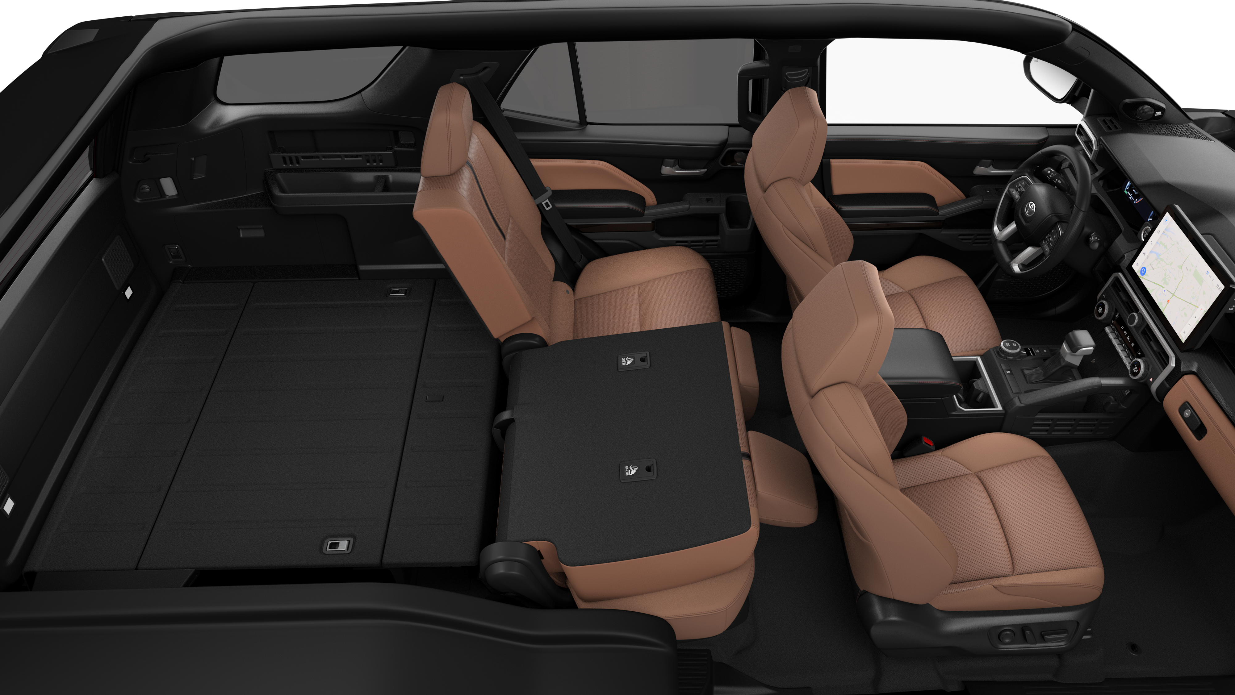 - 60/40 split, reclining and tumble-folding second-row seat with center armrest and cup holders