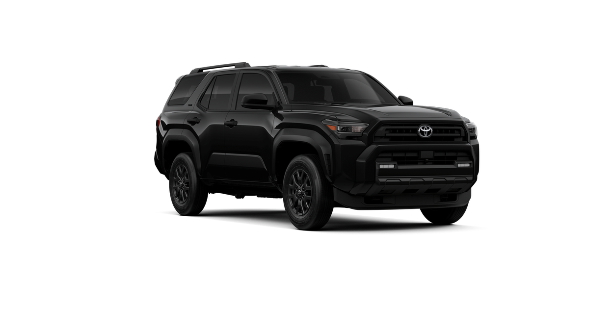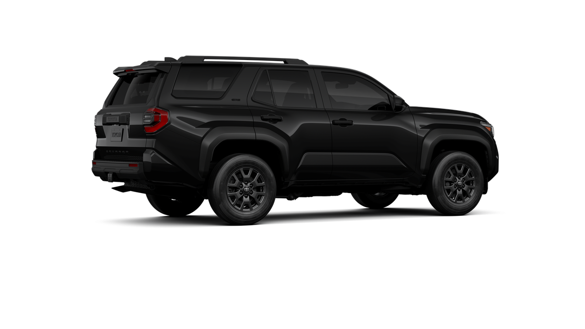 2026 Toyota 4Runner SR5 Black w/Fabric Seat Trim (FA), 4-Wheel Disc Brakes, 8 Speakers, ABS brakes, Air Conditioning, Alloy wheels, AM/FM radio, Anti-whiplash front head restraints, Auto High-beam Headlights, Automatic temperature control, Brake assist, Bumpers: body-color, Driver door bin, Driver vanity mirror, Dual front impact airbags, Dual front side impact airbags, Electronic Stability Control, Emergency communication system, Exterior Parking Camera Rear, Fabric Seat Trim (FA), Front anti-roll bar, Front Bucket Seats, Front Center Armrest, Front dual zone A/C, Front fog lights, Front reading lights, Front wheel independent suspension, Heated door mirrors, Illuminated entry, Knee airbag, Lane Departure Warning System, Leather Shift Knob, Leather steering wheel, Low tire pressure warning, Occupant sensing airbag, Outside temperature display, Overhead airbag, Overhead console, Panic alarm, Passenger door bin, Passenger vanity mirror, Power door mirrors, Power steering, Power windows, Radio: 8" Audio, Rear anti-roll bar, Rear seat center armrest, Rear side impact airbag, Rear window defroster, Rear window wiper, Remote keyless entry, Security system, Speed control, Speed-sensing steering, Split folding rear seat, Spoiler, Steering wheel mounted audio controls, Tachometer, Telescoping steering wheel, Third Row Seating - Fabric, Tilt steering wheel, Traction control, Trip computer, Variably intermittent wipers, Wheels: 17" Dark-Gray Painted Alloy.