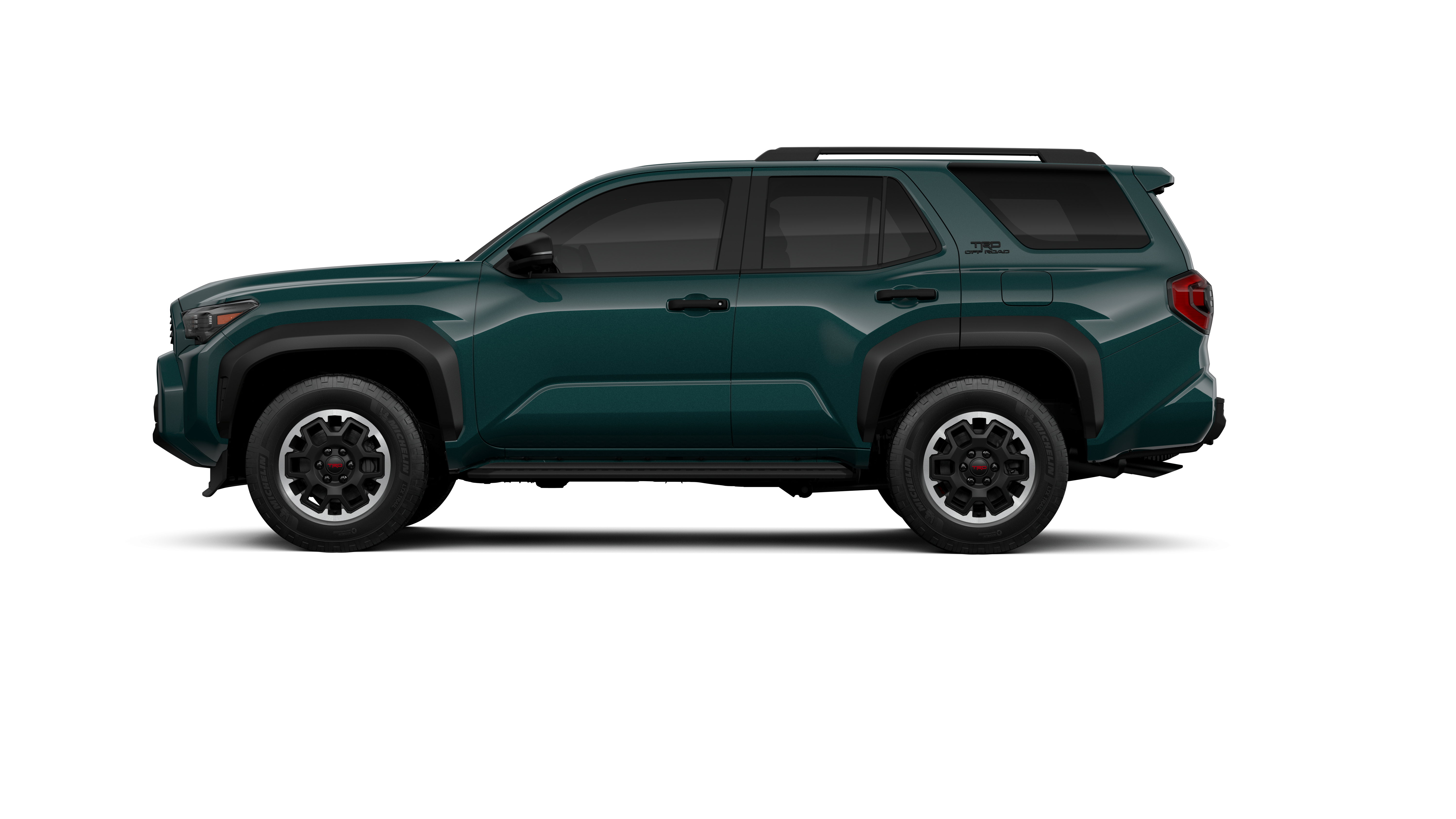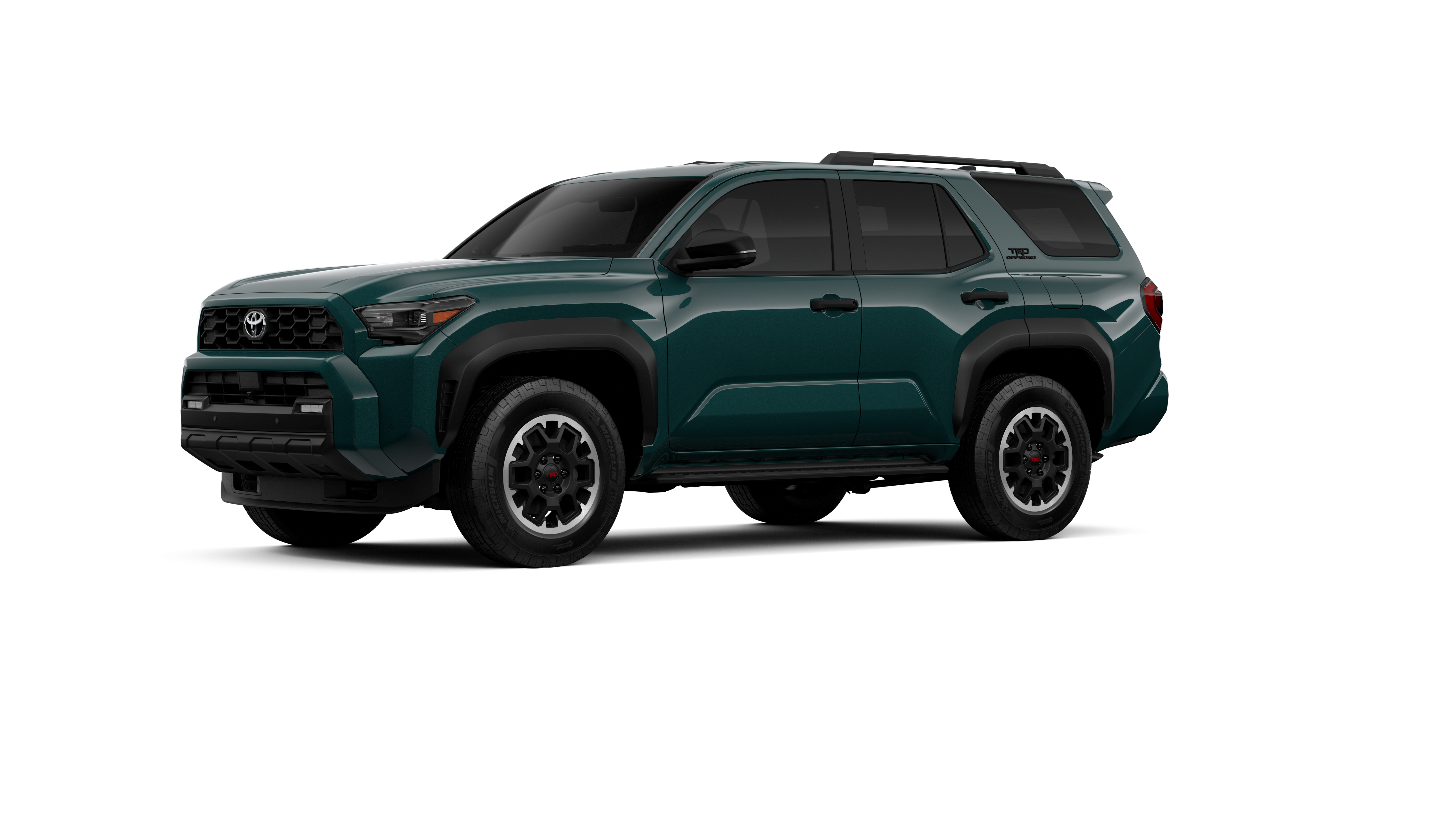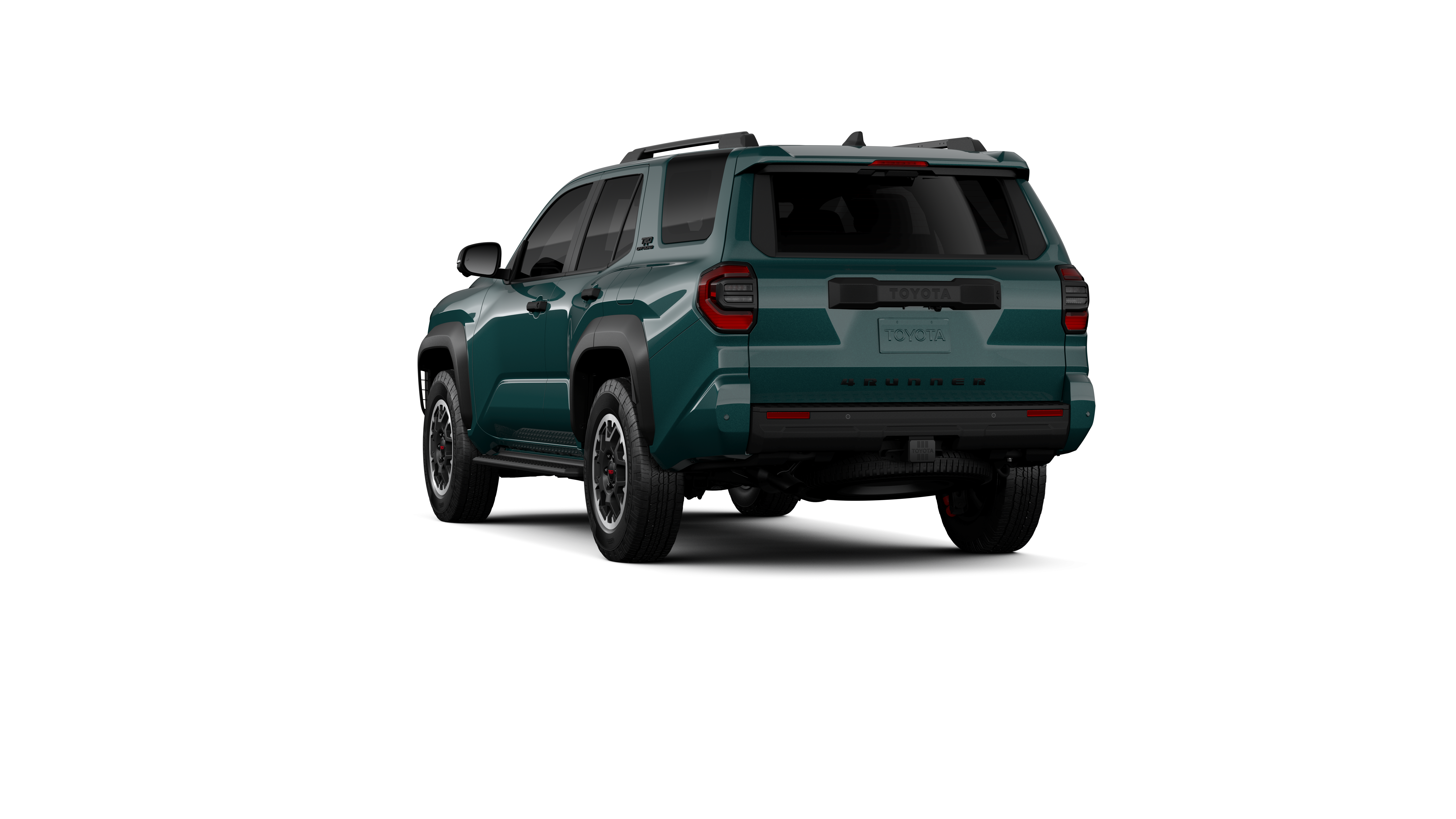 - Black honeycomb-style grille, mirror caps, door handles and overfenders; color-keyed rear spoiler; black "TRD OFF ROAD" and "4RUNNER" badges