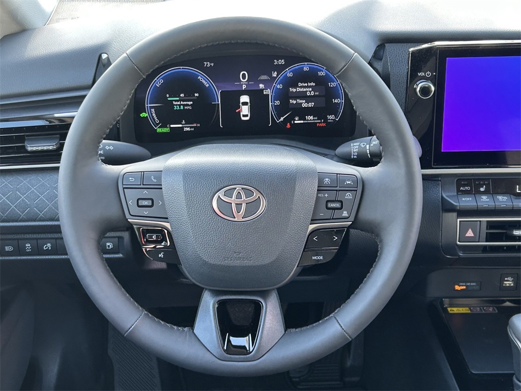 2026 Toyota Camry XLE Black w/Leather and Dinamica Microfiber Seat Trim, 4-Wheel Disc Brakes, 6 Speakers, ABS brakes, Air Conditioning, Alloy wheels, AM/FM radio: SiriusXM, Apple CarPlay/Android Auto, Auto High-beam Headlights, Auto-dimming Rear-View mirror, Automatic temperature control, Brake assist, Bumpers: body-color, Delay-off headlights, Driver door bin, Driver vanity mirror, Dual front impact airbags, Dual front side impact airbags, Electronic Stability Control, Emergency communication system: Safety Connect (5-year trial), Exterior Parking Camera Rear, Four wheel independent suspension, Front anti-roll bar, Front Bucket Seats, Front Center Armrest, Front dual zone A/C, Front reading lights, Fully automatic headlights, Garage door transmitter: HomeLink, Heated door mirrors, Heated Front Seats, Heated front seats, Heated steering wheel, Illuminated entry, Illuminated Trunk Sill, Knee airbag, Leather and Dinamica Microfiber Seat Trim, Leather Shift Knob, Leather steering wheel, Low tire pressure warning, Mudguards, Occupant sensing airbag, Outside temperature display, Overhead airbag, Overhead console, Panic alarm, Passenger door bin, Passenger vanity mirror, Power door mirrors, Power driver seat, Power passenger seat, Power steering, Power windows, Radio data system, Radio: 12.3" Toyota Multimedia Audio, Rear anti-roll bar, Rear reading lights, Rear seat center armrest, Rear window defroster, Remote keyless entry, Security system, Speed control, Speed-sensing steering, Split folding rear seat, Steering wheel mounted audio controls, Telescoping steering wheel, Tilt steering wheel, Traction control, Trip computer, Turn signal indicator mirrors, Variably intermittent wipers, Wheels: 18" 2-Tone Multi-Spoke Machined and Black Finished. 48/47 City/Highway MPG