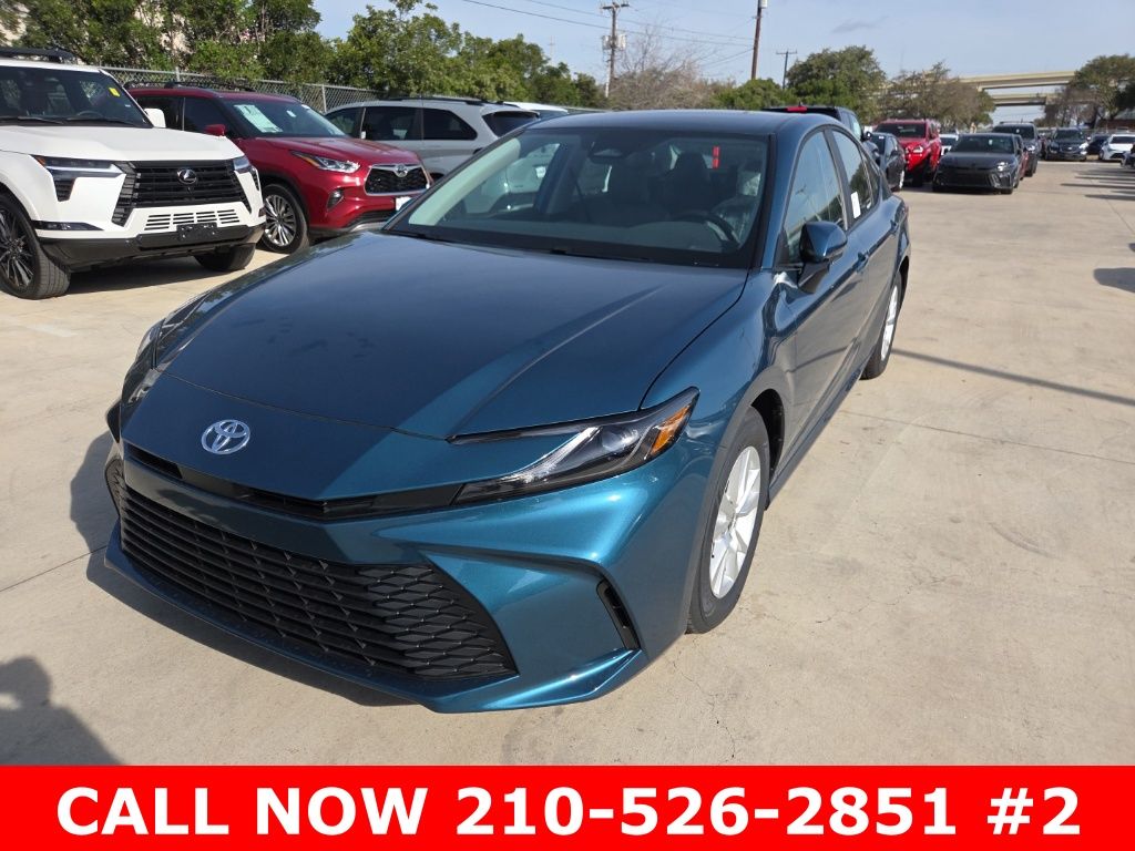 2026 Toyota Camry LE Boulder w/Fabric Seat Trim, 4-Wheel Disc Brakes, 6 Speakers, 8-Way Power-Adjustable Front Driver's Seat, ABS brakes, Air Conditioning, Alloy wheels, AM/FM radio: SiriusXM, Apple CarPlay/Android Auto, Auto High-beam Headlights, Auto-Dimming Rearview Mirror with HomeLink, Automatic temperature control, Brake assist, Bumpers: body-color, Convenience Package, Delay-off headlights, Driver door bin, Driver vanity mirror, Driver-Side Seatback Pocket, Dual front impact airbags, Dual front side impact airbags, Electronic Stability Control, Emergency communication system: Safety Connect (5-year trial), Exterior Parking Camera Rear, Fabric Seat Trim, Four wheel independent suspension, Front anti-roll bar, Front Bucket Seats, Front Center Armrest, Front dual zone A/C, Front reading lights, Front Seats, Fully automatic headlights, Heated door mirrors, Heated Front Seats, Illuminated entry, Knee airbag, Low tire pressure warning, Occupant sensing airbag, Outside temperature display, Overhead airbag, Overhead console, Panic alarm, Passenger door bin, Passenger vanity mirror, Power door mirrors, Power steering, Power windows, Radio data system, Radio: 8" Toyota Audio Multimedia, Rear anti-roll bar, Rear seat center armrest, Rear window defroster, Remote keyless entry, Security system, Smart Key System on Front Doors, Speed control, Speed-sensing steering, Split folding rear seat, Steering wheel mounted audio controls, Telescoping steering wheel, Tilt steering wheel, Traction control, Trip computer, Turn signal indicator mirrors, Variably intermittent wipers, Wheels: 16" 10-Spoke Silver-Painted Alloy. 53/50 City/Highway MPG