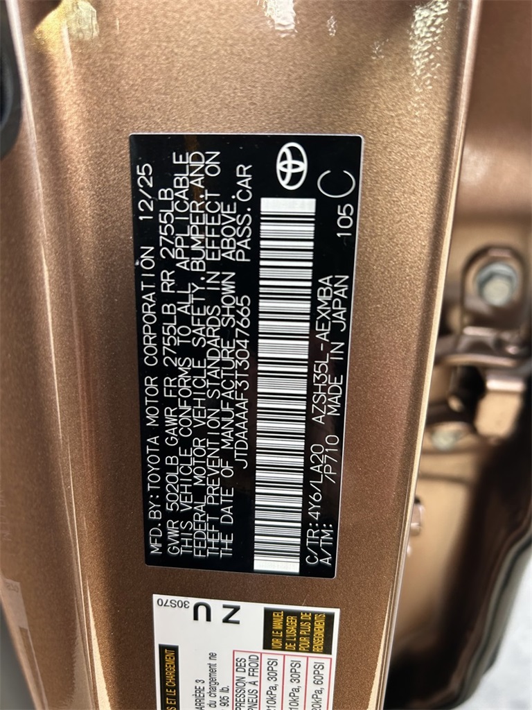 VIN JTDAAAAF3T3047665