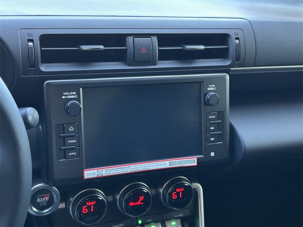 - GR86 Audio—includes 8-in. touchscreen, eight speakers including amplifier, Apple CarPlay® & Android Auto™ compatibility, SiriusXM® 3-month trial subscription. See toyota.com/audio-multimedia for details.