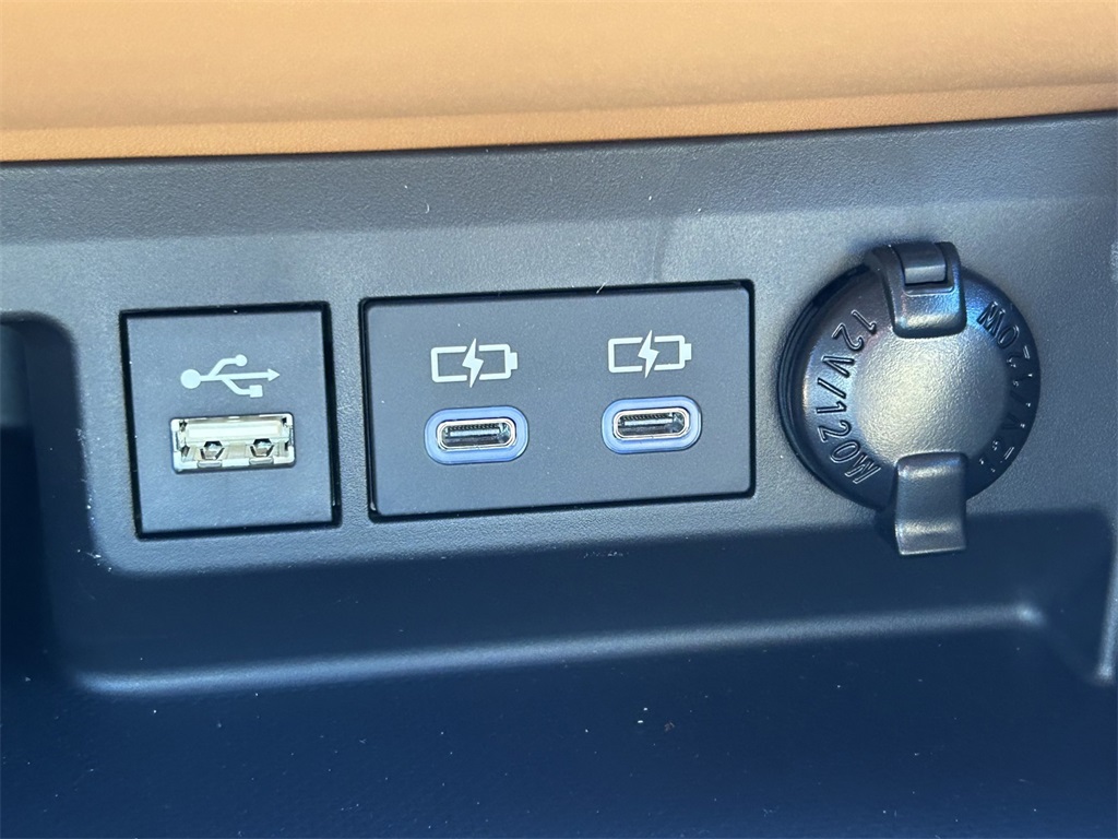 - Five USB ports (one USB-A media port and four USB-C charging ports) and two 12V outlets
