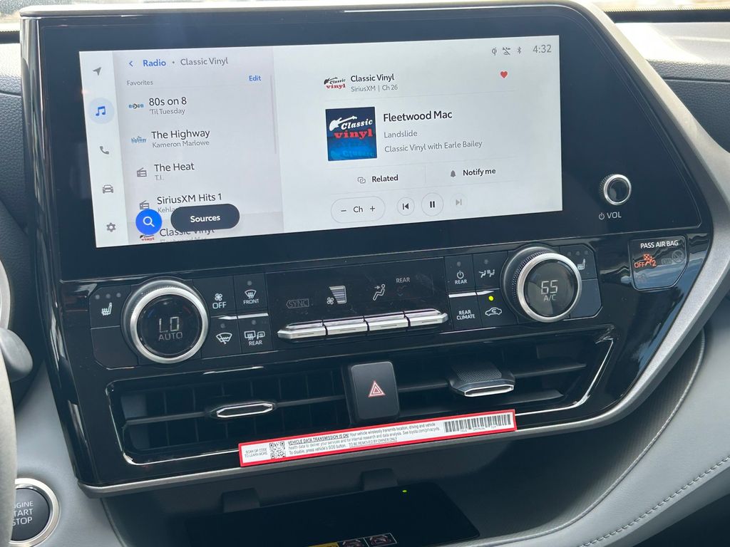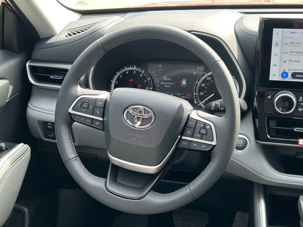 2026 Toyota Highlander XLE AWD, 3rd row seats: split-bench, 4-Wheel Disc Brakes, 6 Speakers, ABS brakes, Air Conditioning, Alloy wheels, AM/FM radio: SiriusXM, Apple CarPlay/Android Auto, Auto High-beam Headlights, Auto-dimming Rear-View mirror, Automatic temperature control, Brake assist, Bumpers: body-color, Delay-off headlights, Driver door bin, Driver vanity mirror, Dual front impact airbags, Dual front side impact airbags, Electronic Stability Control, Emergency communication system: Safety Connect (up to 10-year trial subscription), Exterior Parking Camera Rear, Four wheel independent suspension, Front anti-roll bar, Front Bucket Seats, Front Center Armrest, Front dual zone A/C, Front fog lights, Front reading lights, Fully automatic headlights, Garage door transmitter: HomeLink, Heated door mirrors, Heated Front Bucket Seats, Heated front seats, Illuminated entry, Knee airbag, Leather Shift Knob, Leather steering wheel, Low tire pressure warning, Occupant sensing airbag, Outside temperature display, Overhead airbag, Overhead console, Panic alarm, Passenger door bin, Passenger vanity mirror, Power door mirrors, Power driver seat, Power Liftgate, Power moonroof, Power passenger seat, Power steering, Power windows, Radio: 12.3" Toyota Audio Multimedia, Radio: 8" Toyota Audio Multimedia, Rear air conditioning, Rear anti-roll bar, Rear reading lights, Rear window defroster, Rear window wiper, Reclining 3rd row seat, Remote keyless entry, Security system, SofTex Seat Trim, Speed control, Speed-sensing steering, Split folding rear seat, Spoiler, Steering wheel mounted audio controls, Tachometer, Telescoping steering wheel, Tilt steering wheel, Traction control, Trip computer, Turn signal indicator mirrors, Variably intermittent wipers, Wheels: 18" Machined-Finish Alloy. 21/28 City/Highway MPG