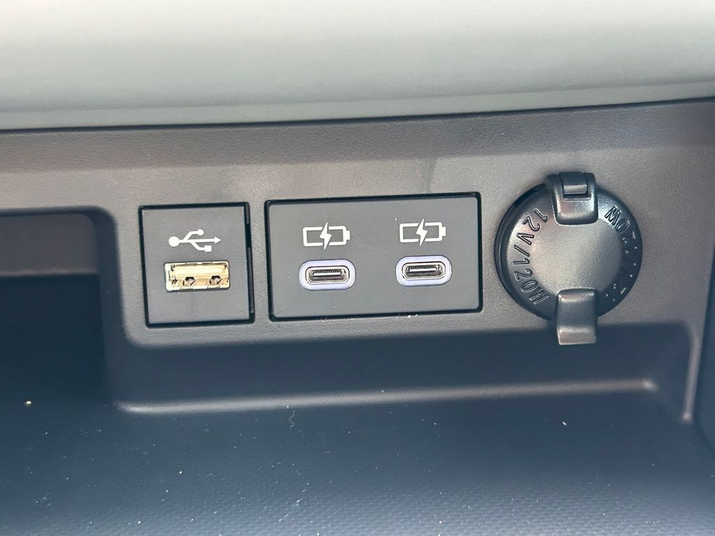 - Five USB ports (one USB-A media port and four USB-C charging ports) and two 12V outlets