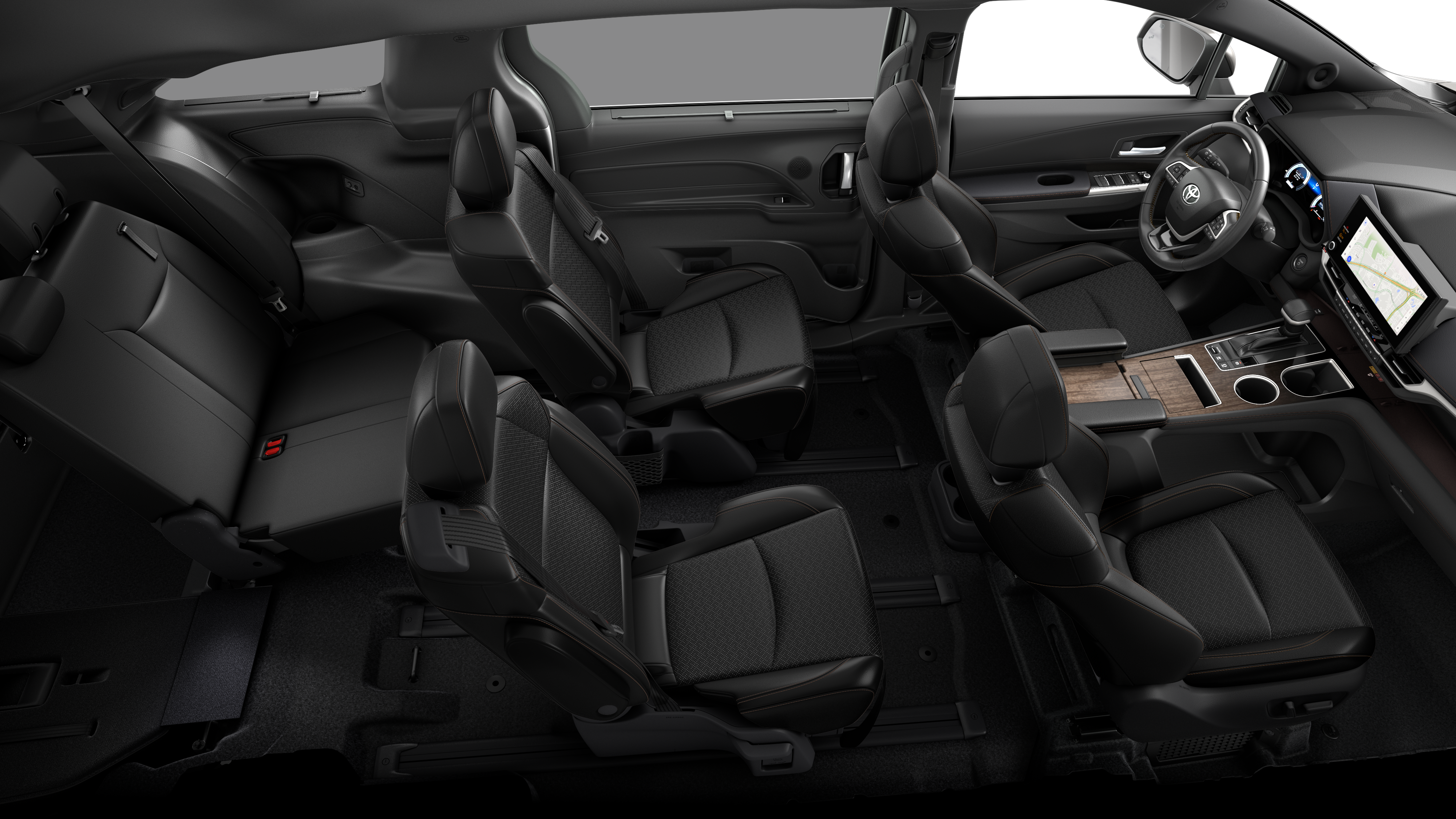 - 7-passenger seating with premium leather-trimmed second-row-seat captain's chairs with super-long-slide feature and ottomans