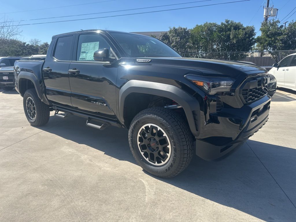 2026 Toyota Tacoma Hybrid TRD Off Road 2.4L 4-Cylinder, 18" Alloy Wheels, 3.583 Axle Ratio, 4-Wheel Disc Brakes, 6 Speakers, ABS brakes, Air Conditioning, Alloy wheels, AM/FM radio: SiriusXM, Anti-whiplash front head restraints, Apple CarPlay/Android Auto, Auto High-beam Headlights, Auto-dimming Rear-View mirror, Automatic temperature control, Bed Scene Lighting, Black Chrome Exhaust Tip, Brake assist, Bumpers: body-color, Cross Model Suspension Kit with 2.5" Lift, Driver door bin, Driver vanity mirror, Dual front impact airbags, Dual front side impact airbags, Electronic Stability Control, Emergency communication system: Safety Connect (up to 10-year trial subscription), Exterior Parking Camera Rear, Fabric Seat Trim, Four wheel independent suspension, Front and Rear Recovery Hooks, Front anti-roll bar, Front Bucket Seats, Front Center Armrest, Front fog lights, Front reading lights, Fully automatic headlights, Heated door mirrors, Illuminated entry, JBL Premium Audio, Knee airbag, Leather Shift Knob, Leather steering wheel, Low tire pressure warning, Navigation system: Drive Connect Cloud Navigation (1-year trial subscription), Occupant sensing airbag, Outside temperature display, Overhead airbag, Overhead console, Panic alarm, Passenger door bin, Passenger vanity mirror, Power door mirrors, Power steering, Power windows, Radio: 14" Toyota Audio Multimedia, Radio: 8" Toyota Audio Multimedia, Radio: Premium Audio with 14" Display, Rear step bumper, Rear window defroster, Remote keyless entry, Removable Predator Step, Security system, SofTex Seat Trim, Speed control, Speed-sensing steering, Split folding rear seat, Spray-on Bed Liner, Steering wheel mounted audio controls, Tachometer, Telescoping steering wheel, Tilt steering wheel, Traction control, TRD Off Road Package, Trip computer, Turn signal indicator mirrors, Variably intermittent wipers.