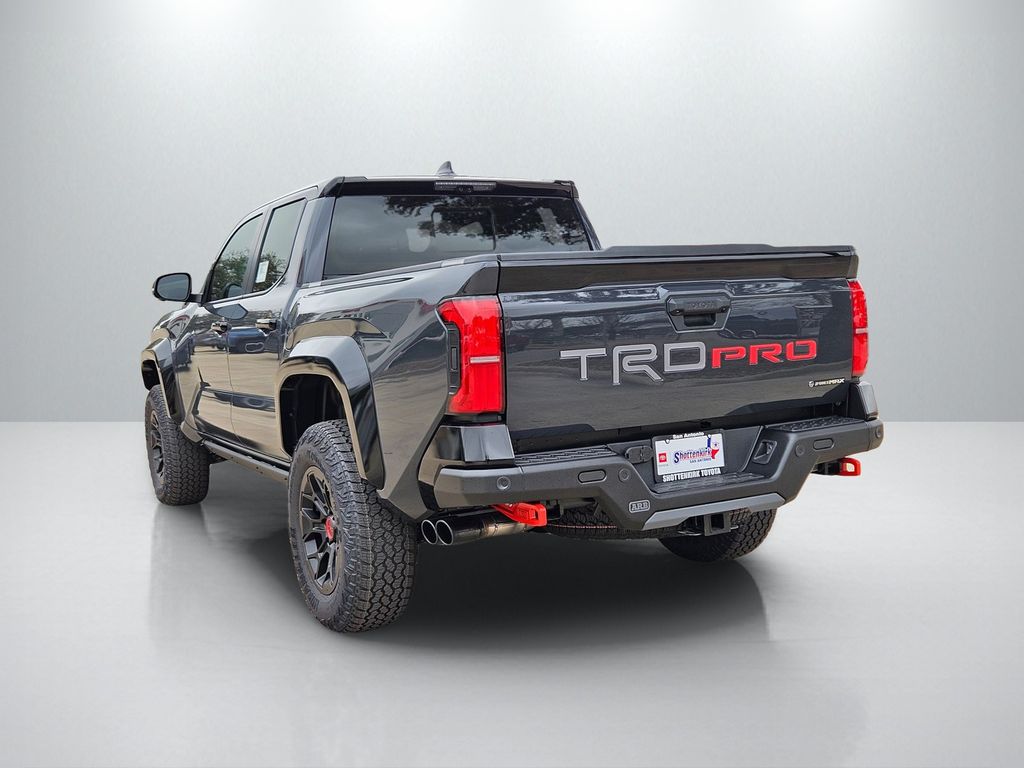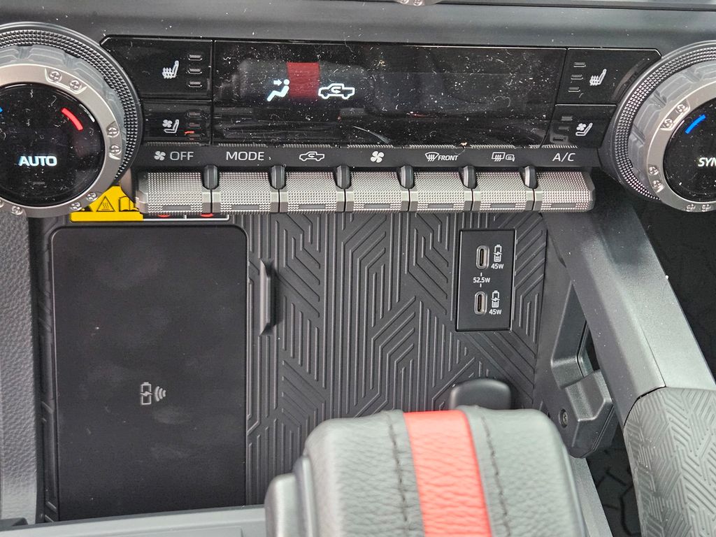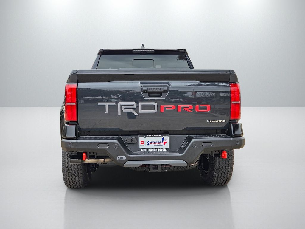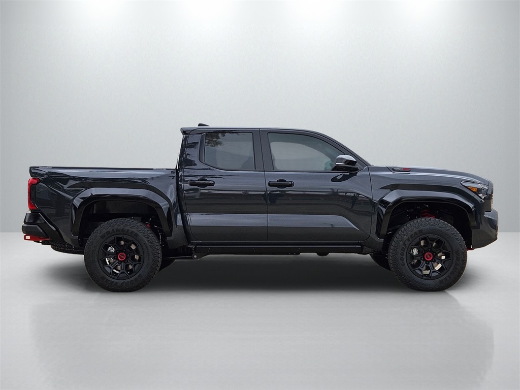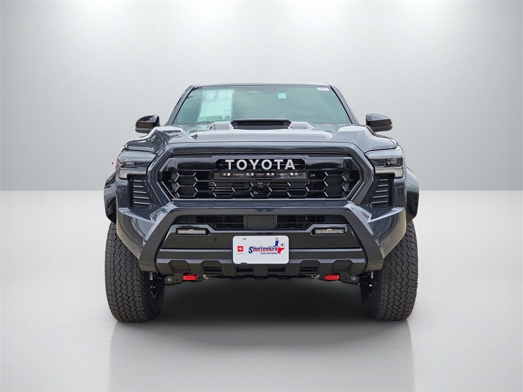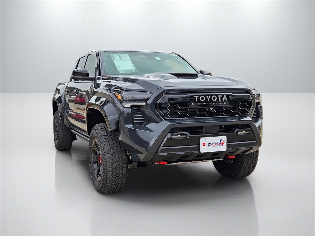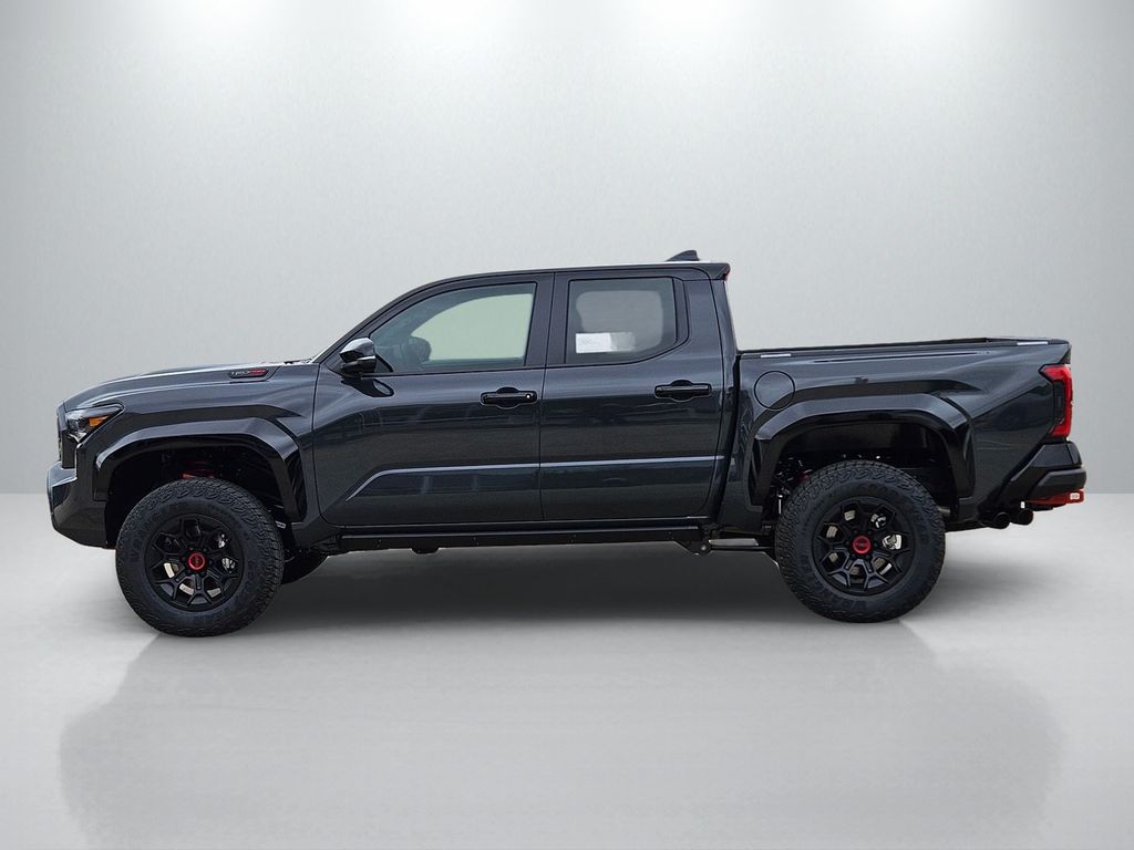 2026 Toyota Tacoma Hybrid TRD Pro 2.4L 4-Cylinder, 3.583 Axle Ratio, 4-Wheel Disc Brakes, 9 Speakers, ABS brakes, Air Conditioning, Alloy wheels, AM/FM radio: SiriusXM, Anti-whiplash front head restraints, Apple CarPlay/Android Auto, Auto High-beam Headlights, Auto-dimming Rear-View mirror, Automatic temperature control, Bed Scene Lighting, Brake assist, Bumpers: body-color, Driver door bin, Driver vanity mirror, Dual front impact airbags, Dual front side impact airbags, Electronic Stability Control, Emergency communication system: Safety Connect (up to 10-year trial subscription), Exterior Parking Camera Rear, Four wheel independent suspension, Front anti-roll bar, Front Bucket Seats, Front Center Armrest, Front dual zone A/C, Front fog lights, Front reading lights, Fully automatic headlights, Garage door transmitter: HomeLink, Heated and Ventilated TRD Pro IsoDynamic Performance Seats, Heated door mirrors, Heated front seats, Heated steering wheel, Illuminated entry, JBL Premium Audio, Knee airbag, Leather Shift Knob, Leather steering wheel, Low tire pressure warning, Navigation system: Drive Connect Cloud Navigation (1-year trial subscription), Occupant sensing airbag, Outside temperature display, Overhead airbag, Overhead console, Panic alarm, Passenger door bin, Passenger vanity mirror, Power door mirrors, Power driver seat, Power moonroof, Power passenger seat, Power steering, Power windows, Radio: 14" Toyota Audio Multimedia, Rear anti-roll bar, Rear step bumper, Rear window defroster, Remote keyless entry, Security system, SofTex Seat Trim, Speed control, Speed-sensing steering, Split folding rear seat, Spray-on Bed Liner, Steering wheel mounted audio controls, Tachometer, Telescoping steering wheel, Tilt steering wheel, Traction control, TRD Pro Package, Trip computer, Turn signal indicator mirrors, Variably intermittent wipers, Ventilated front seats, Wheels: 18" Black TRD Pro Alloy.