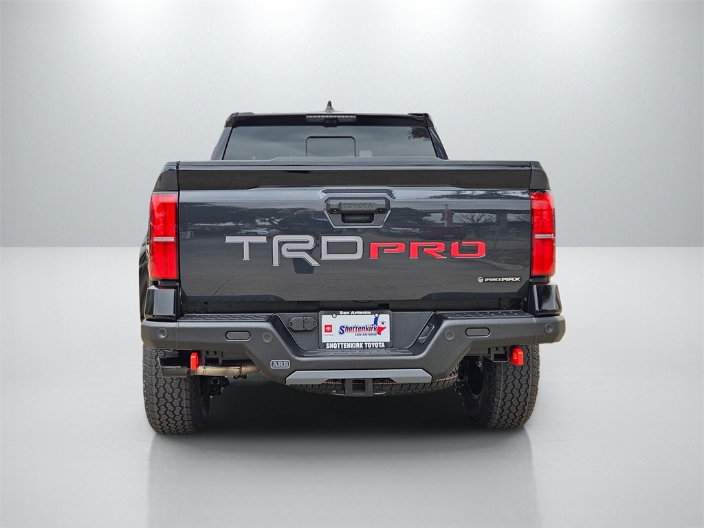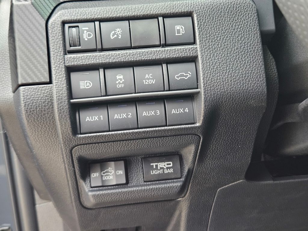 - "TRD Pro" stamped power open-and-close tailgate with hands-free knee-lift assist, integrated taillight bump switches, and jam protection