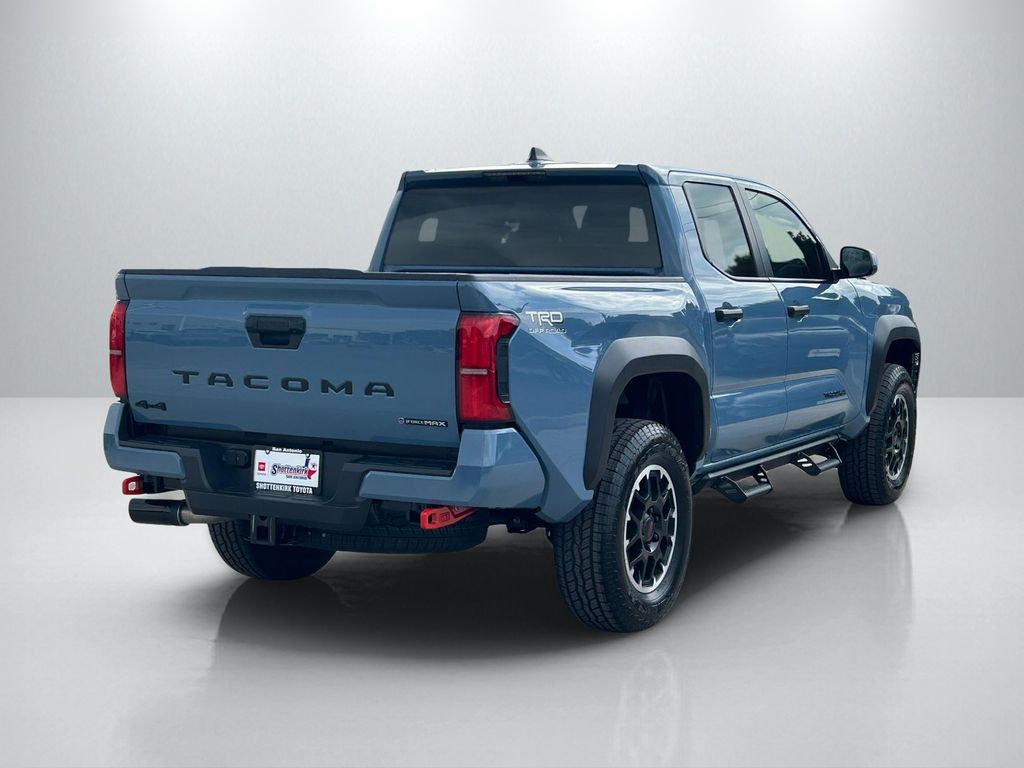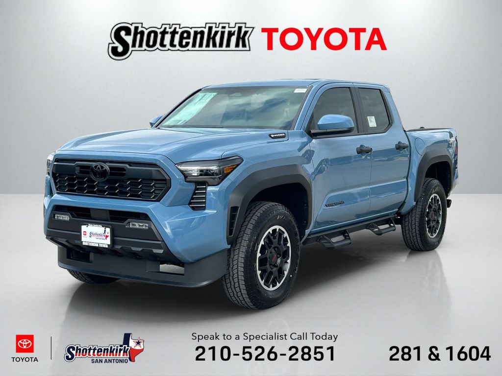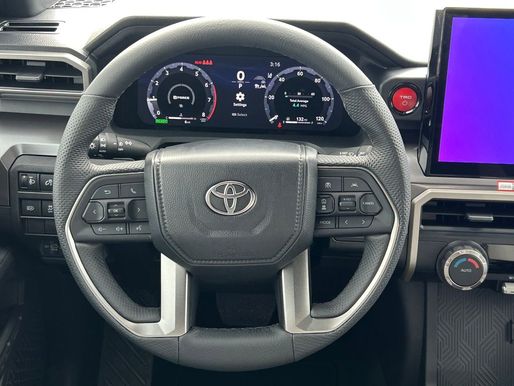 2026 Toyota Tacoma Hybrid TRD Off Road 2.4L 4-Cylinder, 18" Alloy Wheels, 3.583 Axle Ratio, 4-Wheel Disc Brakes, 6 Speakers, ABS brakes, Air Conditioning, Alloy wheels, AM/FM radio: SiriusXM, Anti-whiplash front head restraints, Apple CarPlay/Android Auto, ARB Rear Tow Hooks, Auto High-beam Headlights, Auto-dimming Rear-View mirror, Automatic temperature control, Brake assist, Bumpers: body-color, Driver door bin, Driver vanity mirror, Dual front impact airbags, Dual front side impact airbags, Electronic Stability Control, Emergency communication system: Safety Connect (up to 10-year trial subscription), Exterior Parking Camera Rear, Fabric Seat Trim, Four wheel independent suspension, Front anti-roll bar, Front Bucket Seats, Front Center Armrest, Front fog lights, Front reading lights, Fully automatic headlights, Heated door mirrors, Illuminated entry, JBL Premium Audio, Knee airbag, Leather Shift Knob, Leather steering wheel, Low tire pressure warning, Navigation system: Drive Connect Cloud Navigation (1-year trial subscription), Occupant sensing airbag, Outside temperature display, Overhead airbag, Overhead console, Panic alarm, Passenger door bin, Passenger vanity mirror, Power door mirrors, Power steering, Power windows, Radio: 14" Toyota Audio Multimedia, Radio: 8" Toyota Audio Multimedia, Radio: Premium Audio with 14" Display, Rear step bumper, Rear window defroster, Remote keyless entry, Removable Predator Step, Security system, SofTex Seat Trim, Speed control, Speed-sensing steering, Split folding rear seat, Spray-on Bed Liner, Steering wheel mounted audio controls, Tachometer, Telescoping steering wheel, Tilt steering wheel, Traction control, TRD Off Road Package, Trip computer, Turn signal indicator mirrors, Variably intermittent wipers.