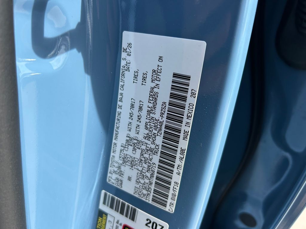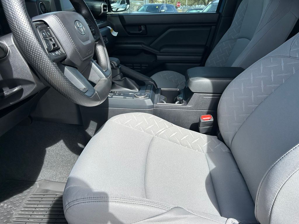 2026 Toyota Tacoma SR5 3.583 Axle Ratio, 4-Wheel Disc Brakes, 6 Speakers, ABS brakes, Air Conditioning, Alloy wheels, AM/FM radio: SiriusXM, Anti-whiplash front head restraints, Apple CarPlay/Android Auto, Auto High-beam Headlights, Auto-dimming Rear-View mirror, Brake assist, Bumpers: body-color, Driver door bin, Dual front impact airbags, Dual front side impact airbags, Electronic Stability Control, Emergency communication system: Safety Connect (up to 10-year trial subscription), Exterior Parking Camera Rear, Fabric Seat Trim, Four wheel independent suspension, Front anti-roll bar, Front Bucket Seats, Front Center Armrest, Front fog lights, Front reading lights, Fully automatic headlights, Heated door mirrors, Illuminated entry, Knee airbag, Low tire pressure warning, Occupant sensing airbag, Outside temperature display, Overhead airbag, Overhead console, Panic alarm, Passenger door bin, Power door mirrors, Power steering, Power windows, Radio: 8" Toyota Audio Multimedia, Rear step bumper, Rear window defroster, Remote keyless entry, Speed control, Speed-sensing steering, Split folding rear seat, Spray-on Bed Liner, Steering wheel mounted audio controls, Tachometer, Telescoping steering wheel, Tilt steering wheel, Traction control, Trip computer, Variably intermittent wipers, Wheels: 17" Styled Alloy. 21/26 City/Highway MPG