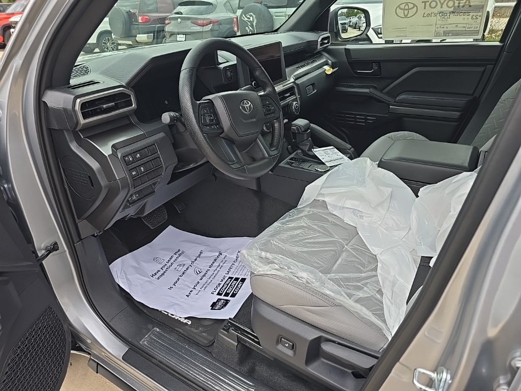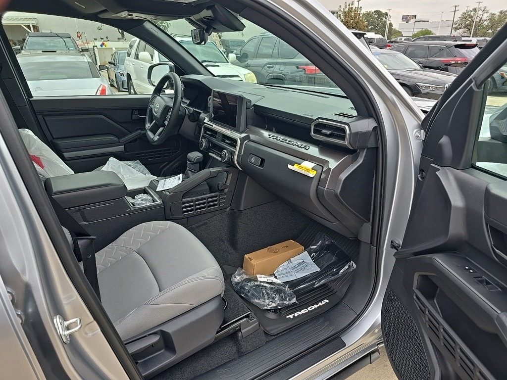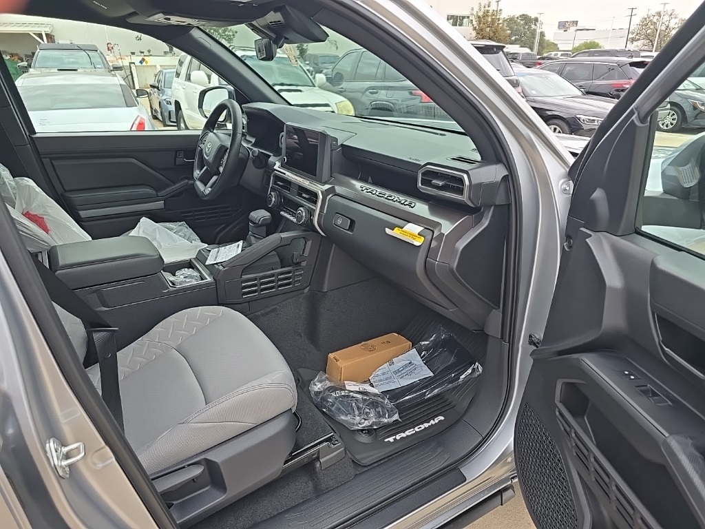 2026 Toyota Tacoma SR5 3.583 Axle Ratio, 4-Wheel Disc Brakes, 6 Speakers, ABS brakes, Air Conditioning, Alloy wheels, AM/FM radio: SiriusXM, Anti-whiplash front head restraints, Apple CarPlay/Android Auto, Auto High-beam Headlights, Auto-dimming Rear-View mirror, Brake assist, Bumpers: body-color, Driver door bin, Dual front impact airbags, Dual front side impact airbags, Electronic Stability Control, Emergency communication system: Safety Connect (up to 10-year trial subscription), Exterior Parking Camera Rear, Fabric Seat Trim, Four wheel independent suspension, Front anti-roll bar, Front Bucket Seats, Front Center Armrest, Front fog lights, Front reading lights, Fully automatic headlights, Heated door mirrors, Illuminated entry, Knee airbag, Low tire pressure warning, Occupant sensing airbag, Outside temperature display, Overhead airbag, Overhead console, Panic alarm, Passenger door bin, Power door mirrors, Power steering, Power windows, Radio: 8" Toyota Audio Multimedia, Rear step bumper, Rear window defroster, Remote keyless entry, Speed control, Speed-sensing steering, Split folding rear seat, Spray-On Bed Liner (TMS), Steering wheel mounted audio controls, Tachometer, Telescoping steering wheel, Tilt steering wheel, Traction control, Trip computer, Variably intermittent wipers, Wheels: 17" Styled Alloy. 21/26 City/Highway MPG
