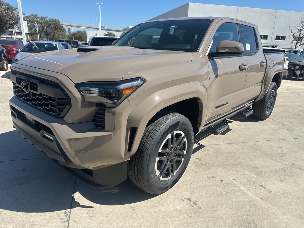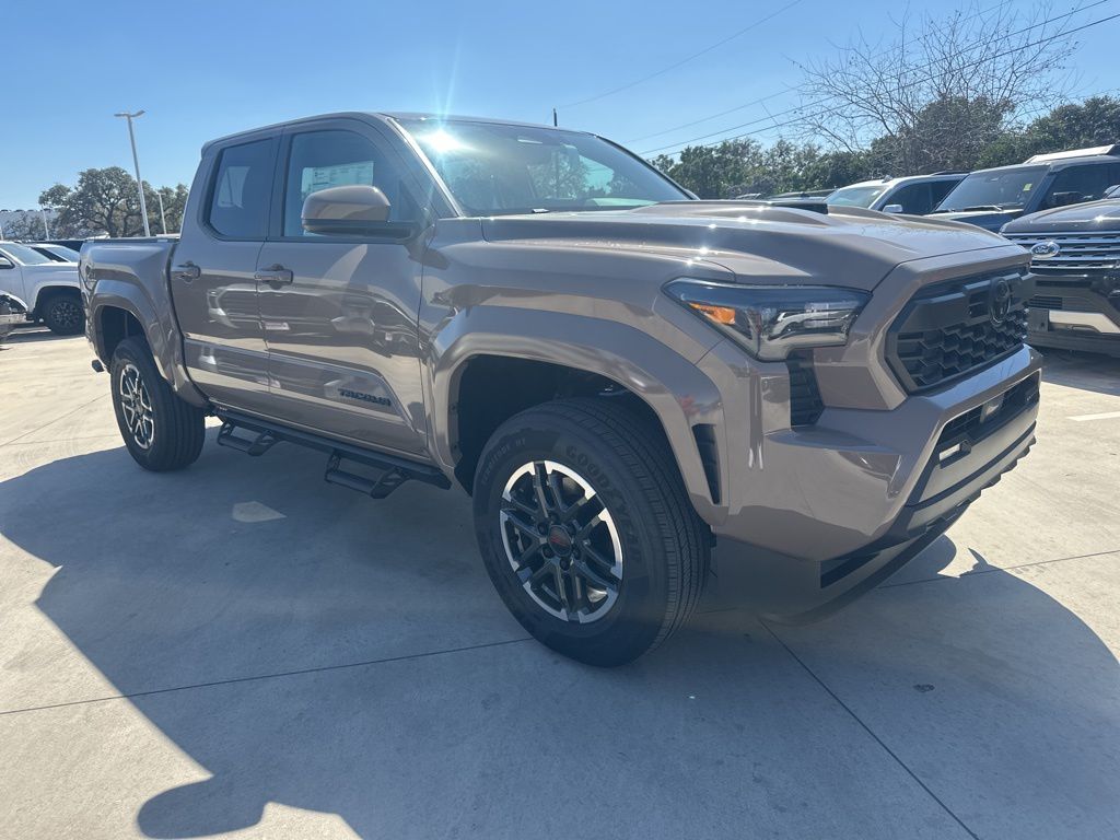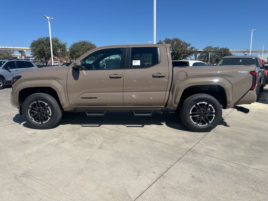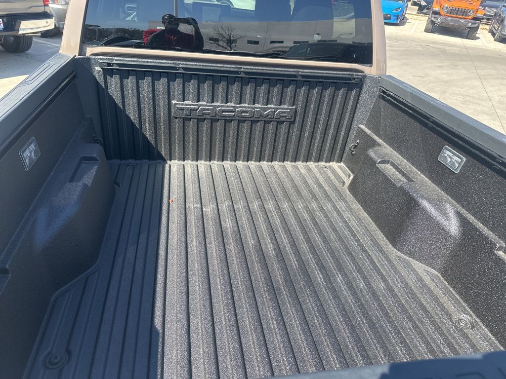 2026 Toyota Tacoma TRD Sport 3.583 Axle Ratio, 4-Wheel Disc Brakes, 6 Speakers, ABS brakes, Air Conditioning, Alloy wheels, AM/FM radio: SiriusXM, Anti-whiplash front head restraints, Apple CarPlay/Android Auto, Auto High-beam Headlights, Auto-dimming Rear-View mirror, Automatic temperature control, Bed Scene Lighting, Bed Step, Brake assist, Bumpers: body-color, Driver door bin, Driver vanity mirror, Dual front impact airbags, Dual front side impact airbags, Electronic Stability Control, Emergency communication system: Safety Connect (up to 10-year trial subscription), Exterior Parking Camera Rear, Fabric Seat Trim, Four wheel independent suspension, Front anti-roll bar, Front Bucket Seats, Front Center Armrest, Front fog lights, Front reading lights, Fully automatic headlights, Heated door mirrors, Illuminated entry, Knee airbag, Leather Shift Knob, Leather steering wheel, Low tire pressure warning, Occupant sensing airbag, Outside temperature display, Overhead airbag, Overhead console, Panic alarm, Passenger door bin, Passenger vanity mirror, Power door mirrors, Power steering, Power windows, Radio: 8" Toyota Audio Multimedia, Radio: Premium Audio with 14" Display, Rear step bumper, Rear window defroster, Remote keyless entry, Removable Predator Step, Security system, Speed control, Speed-sensing steering, Split folding rear seat, Spray-on Bed Liner, Steering wheel mounted audio controls, Tachometer, Telescoping steering wheel, Tilt steering wheel, Traction control, TRD Sport Package, Trip computer, Turn signal indicator mirrors, Variably intermittent wipers, Wheels: 18" TRD Sport Alloy.