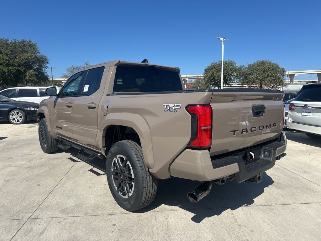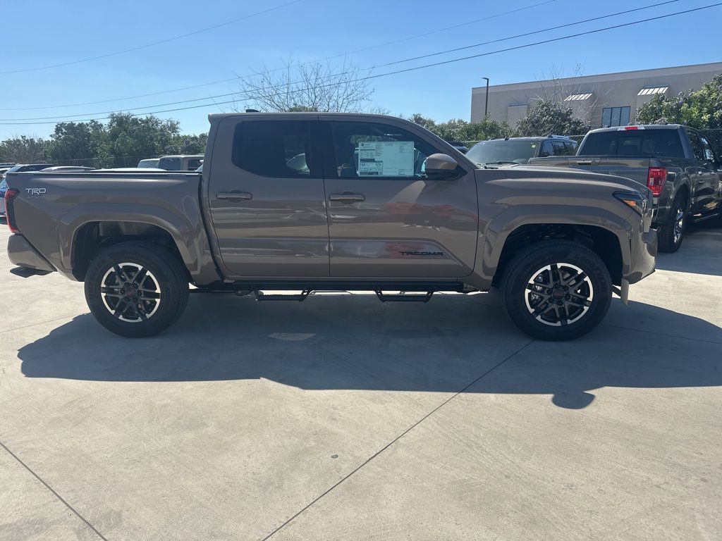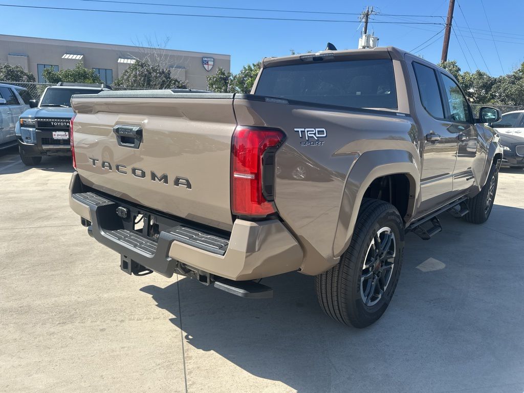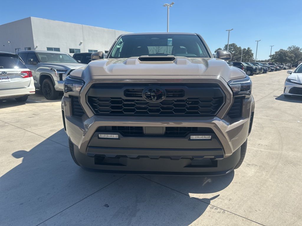 2026 Toyota Tacoma TRD Sport 3.583 Axle Ratio, 4-Wheel Disc Brakes, 6 Speakers, ABS brakes, Air Conditioning, Alloy wheels, AM/FM radio: SiriusXM, Anti-whiplash front head restraints, Apple CarPlay/Android Auto, Auto High-beam Headlights, Auto-dimming Rear-View mirror, Automatic temperature control, Bed Scene Lighting, Bed Step, Brake assist, Bumpers: body-color, Driver door bin, Driver vanity mirror, Dual front impact airbags, Dual front side impact airbags, Electronic Stability Control, Emergency communication system: Safety Connect (up to 10-year trial subscription), Exterior Parking Camera Rear, Fabric Seat Trim, Four wheel independent suspension, Front anti-roll bar, Front Bucket Seats, Front Center Armrest, Front fog lights, Front reading lights, Fully automatic headlights, Heated door mirrors, Illuminated entry, Knee airbag, Leather Shift Knob, Leather steering wheel, Low tire pressure warning, Occupant sensing airbag, Outside temperature display, Overhead airbag, Overhead console, Panic alarm, Passenger door bin, Passenger vanity mirror, Power door mirrors, Power steering, Power windows, Radio: 8" Toyota Audio Multimedia, Radio: Premium Audio with 14" Display, Rear step bumper, Rear window defroster, Remote keyless entry, Removable Predator Step, Security system, Speed control, Speed-sensing steering, Split folding rear seat, Spray-on Bed Liner, Steering wheel mounted audio controls, Tachometer, Telescoping steering wheel, Tilt steering wheel, Traction control, TRD Sport Package, Trip computer, Turn signal indicator mirrors, Variably intermittent wipers, Wheels: 18" TRD Sport Alloy.