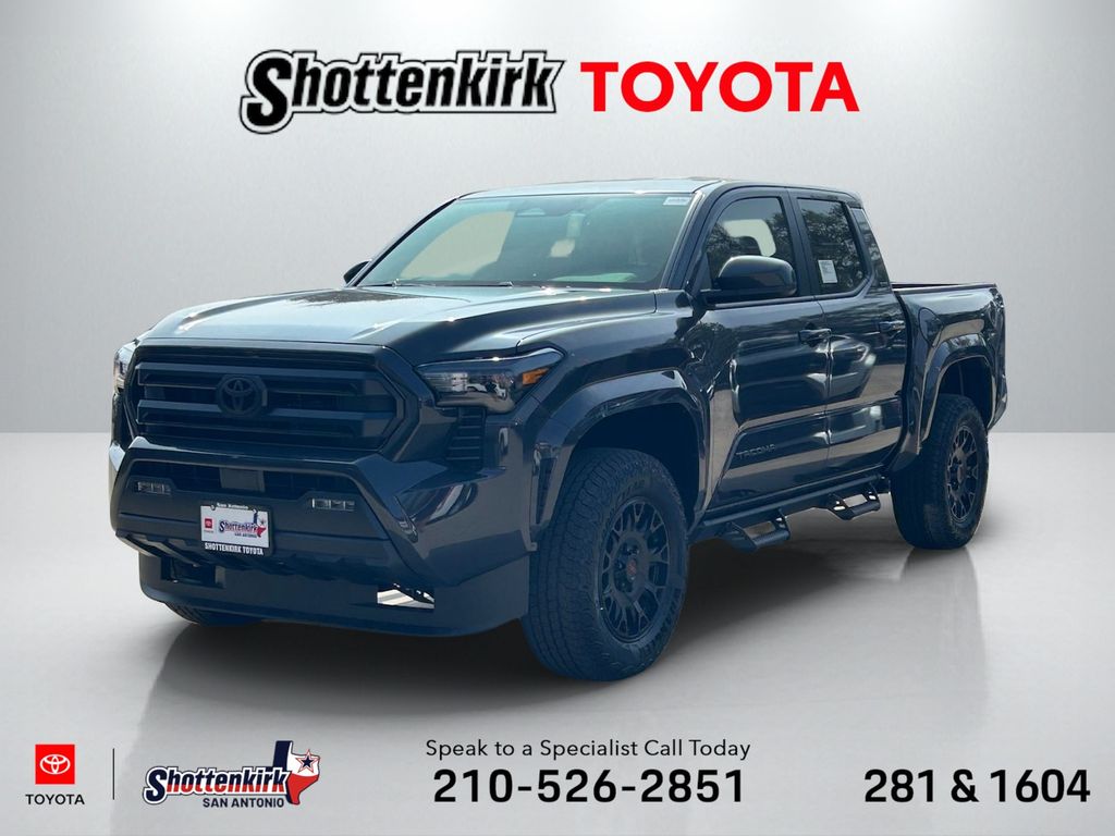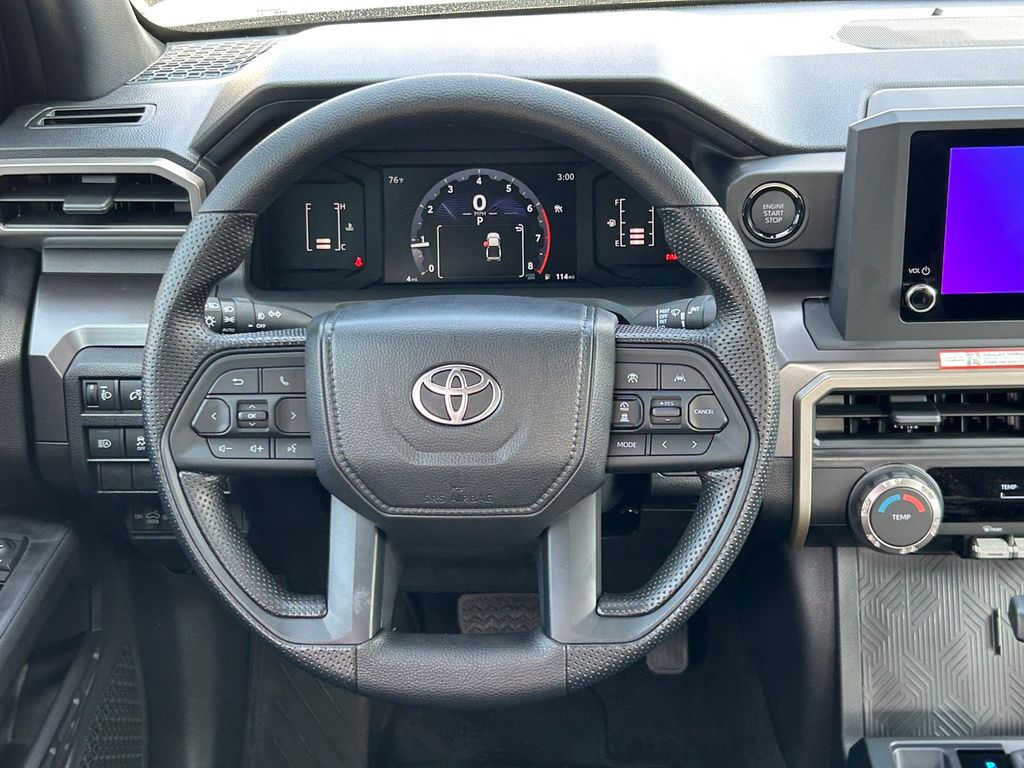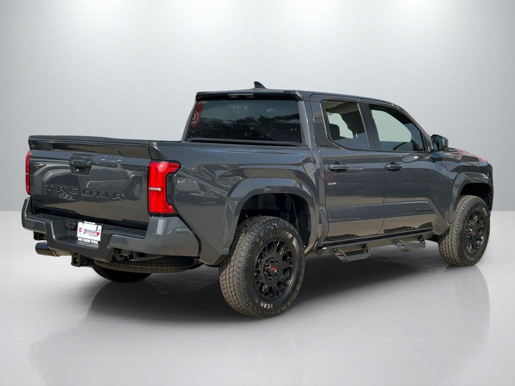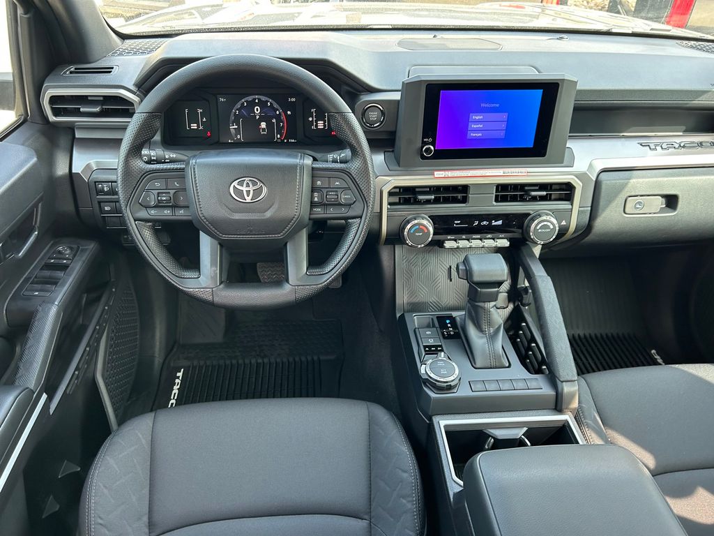 2026 Toyota Tacoma SR5 4WD, 3.583 Axle Ratio, 4-Wheel Disc Brakes, 6 Speakers, ABS brakes, Air Conditioning, Alloy wheels, AM/FM radio: SiriusXM, Anti-whiplash front head restraints, Apple CarPlay/Android Auto, Auto High-beam Headlights, Auto-dimming Rear-View mirror, Brake assist, Bumpers: body-color, Driver door bin, Dual front impact airbags, Dual front side impact airbags, Electronic Stability Control, Emergency communication system: Safety Connect (up to 10-year trial subscription), Exterior Parking Camera Rear, Fabric Seat Trim, Four wheel independent suspension, Front anti-roll bar, Front Bucket Seats, Front Center Armrest, Front fog lights, Front reading lights, Fully automatic headlights, Heated door mirrors, Illuminated entry, JBL Premium Audio, Knee airbag, Low tire pressure warning, Occupant sensing airbag, Outside temperature display, Overhead airbag, Overhead console, Panic alarm, Passenger door bin, Power door mirrors, Power steering, Power windows, Radio: 8" Toyota Audio Multimedia, Rear step bumper, Rear window defroster, Remote keyless entry, Speed control, Speed-sensing steering, Split folding rear seat, Spray-on Bed Liner, Steering wheel mounted audio controls, Tachometer, Telescoping steering wheel, Tilt steering wheel, Traction control, TRD Wheel, Exhaust Tip and Predator Drop Step Package, Trip computer, Variably intermittent wipers, Wheels: 17" Styled Alloy.