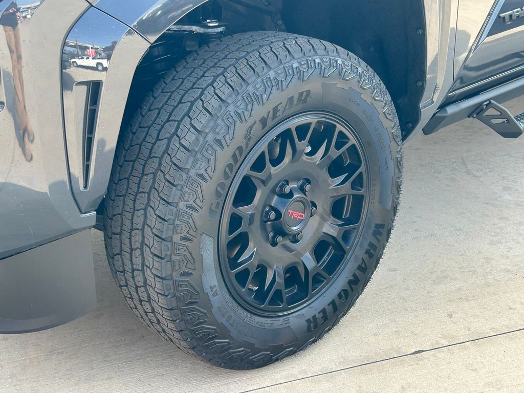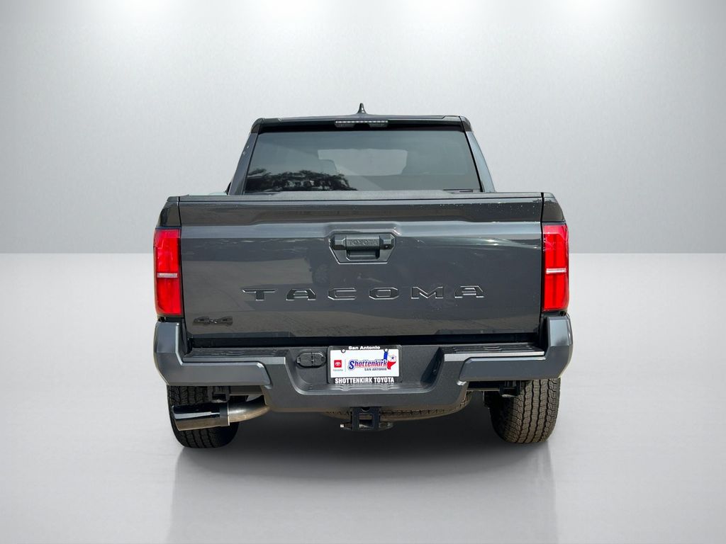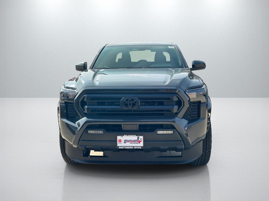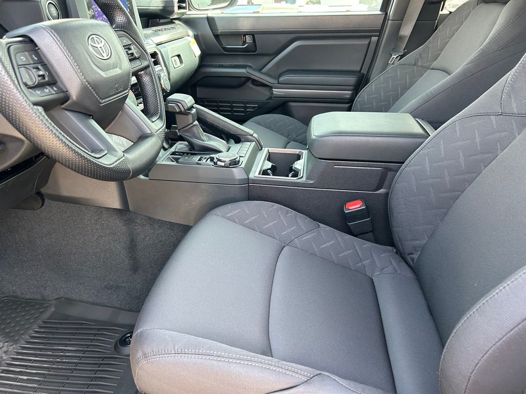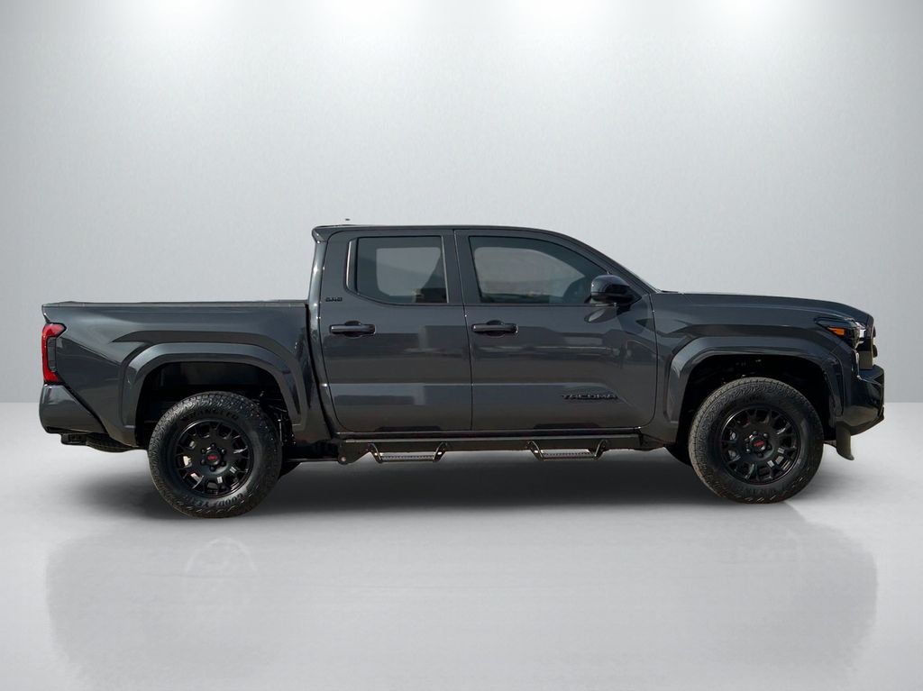 2026 Toyota Tacoma SR5 4WD, 3.583 Axle Ratio, 4-Wheel Disc Brakes, 6 Speakers, ABS brakes, Air Conditioning, Alloy wheels, AM/FM radio: SiriusXM, Anti-whiplash front head restraints, Apple CarPlay/Android Auto, Auto High-beam Headlights, Auto-dimming Rear-View mirror, Brake assist, Bumpers: body-color, Driver door bin, Dual front impact airbags, Dual front side impact airbags, Electronic Stability Control, Emergency communication system: Safety Connect (up to 10-year trial subscription), Exterior Parking Camera Rear, Fabric Seat Trim, Four wheel independent suspension, Front anti-roll bar, Front Bucket Seats, Front Center Armrest, Front fog lights, Front reading lights, Fully automatic headlights, Heated door mirrors, Illuminated entry, JBL Premium Audio, Knee airbag, Low tire pressure warning, Occupant sensing airbag, Outside temperature display, Overhead airbag, Overhead console, Panic alarm, Passenger door bin, Power door mirrors, Power steering, Power windows, Radio: 8" Toyota Audio Multimedia, Rear step bumper, Rear window defroster, Remote keyless entry, Speed control, Speed-sensing steering, Split folding rear seat, Spray-on Bed Liner, Steering wheel mounted audio controls, Tachometer, Telescoping steering wheel, Tilt steering wheel, Traction control, TRD Wheel, Exhaust Tip and Predator Drop Step Package, Trip computer, Variably intermittent wipers, Wheels: 17" Styled Alloy.