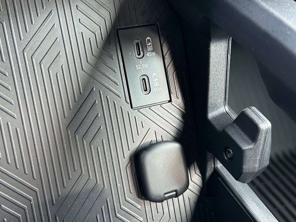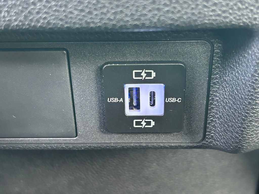 Dual illuminated rear center console-mounted USB charging ports.