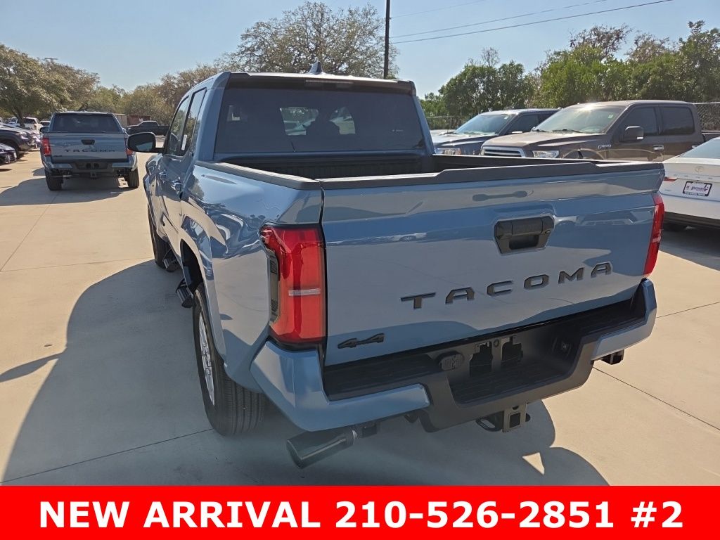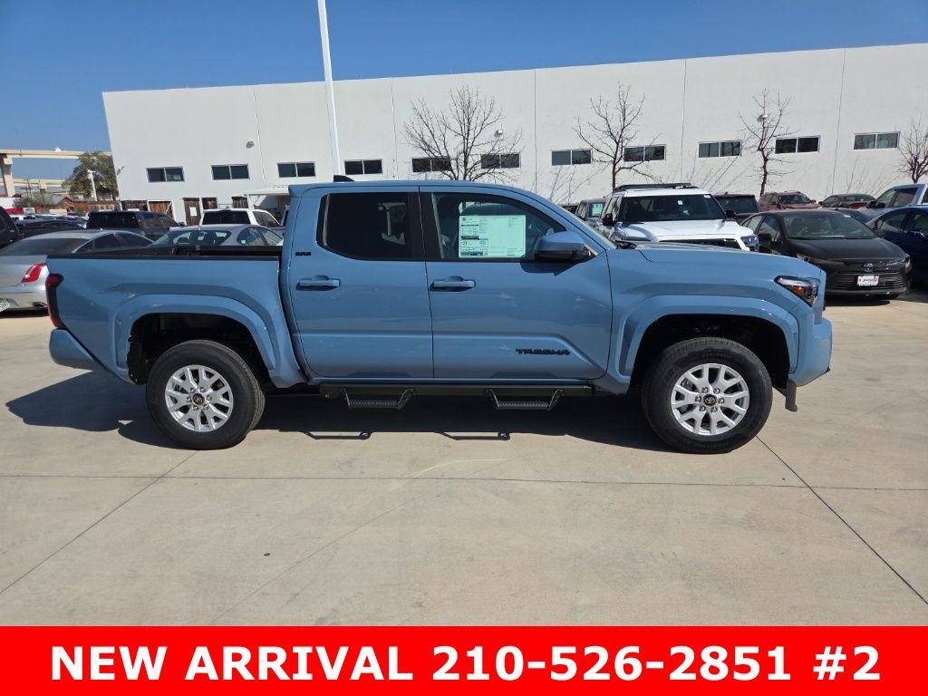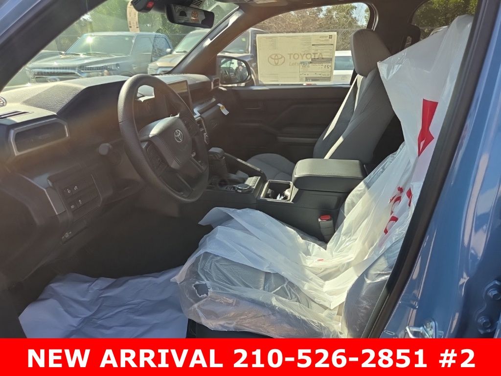 2026 Toyota Tacoma SR5 4WD, 3.583 Axle Ratio, 4-Wheel Disc Brakes, 6 Speakers, ABS brakes, Air Conditioning, Alloy wheels, AM/FM radio: SiriusXM, Anti-whiplash front head restraints, Apple CarPlay/Android Auto, Auto High-beam Headlights, Auto-dimming Rear-View mirror, Brake assist, Bumpers: body-color, Driver door bin, Dual front impact airbags, Dual front side impact airbags, Electronic Stability Control, Emergency communication system: Safety Connect (up to 10-year trial subscription), Exterior Parking Camera Rear, Fabric Seat Trim, Four wheel independent suspension, Front anti-roll bar, Front Bucket Seats, Front Center Armrest, Front fog lights, Front reading lights, Fully automatic headlights, Heated door mirrors, Illuminated entry, JBL Premium Audio, Knee airbag, Low tire pressure warning, Occupant sensing airbag, Outside temperature display, Overhead airbag, Overhead console, Panic alarm, Passenger door bin, Power door mirrors, Power steering, Power windows, Radio: 8" Toyota Audio Multimedia, Rear step bumper, Rear window defroster, Remote keyless entry, Speed control, Speed-sensing steering, Split folding rear seat, Steering wheel mounted audio controls, Tachometer, Telescoping steering wheel, Tilt steering wheel, Traction control, Trip computer, Variably intermittent wipers, Wheels: 17" Styled Alloy.