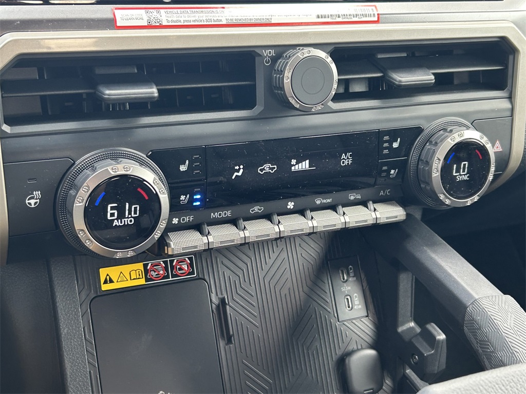 2026 Toyota Tacoma TRD Off-Road 4WD, 120V/400W AC Power Inverter, 18" Wheels, 3.583 Axle Ratio, 3D Multi-Terrain Monitor, 4-Wheel Disc Brakes, 6 Speakers, 8-Way Power Driver and Passenger Seat Adjusters, ABS brakes, Air Conditioning, Alloy wheels, AM/FM radio: SiriusXM, Anti-whiplash front head restraints, Apple CarPlay/Android Auto, ARB Rear Tow Hooks, Auto High-beam Headlights, Auto-dimming Rear-View mirror, Automatic temperature control, Brake assist, Bumpers: body-color, Deck Storage Box, Digital Rearview Mirror, Driver door bin, Driver vanity mirror, Dual front impact airbags, Dual front side impact airbags, Electronic Stability Control, Emergency communication system: Safety Connect (up to 10-year trial subscription), Exterior Parking Camera Rear, Fabric Seat Trim, Four wheel independent suspension, Front anti-roll bar, Front Bucket Seats, Front Center Armrest, Front fog lights, Front reading lights, Fully automatic headlights, Heated door mirrors, Heated Front Seats, Heated Leather-Trimmed Steering Wheel, Illuminated entry, Integrated Trailer Brake Controller, JBL Premium Audio, Knee airbag, Leather Shift Knob, Leather steering wheel, Low Auxiliary (30A) Switches, Low tire pressure warning, Occupant sensing airbag, Outside temperature display, Overhead airbag, Overhead console, Panic alarm, Passenger door bin, Passenger vanity mirror, Power door mirrors, Power Horizontal Rear Window, Power steering, Power Tilt/Slide Moonroof with Sliding Sunshade, Power windows, Pre-Wire Accommodation (bed Power Port), Radio: 14" Toyota Audio Multimedia with TRD Premium, Radio: 8" Toyota Audio Multimedia, Rear step bumper, Rear window defroster, Remote keyless entry, Removable Predator Step, Security system, Smart Key w/Digital Key Technology, SofTex Seat Trim, Speed control, Speed-sensing steering, Split folding rear seat, Spray-on Bed Liner, Steering wheel mounted audio controls, Tachometer, TACOMA Stamped Power Open and Close Tailgate, Telescoping steering wheel, Tilt steering wheel, Towing Hitch, Towing Package, Traction control, TRD Off Road Premium Package, Trip computer, Turn signal indicator mirrors, Variably intermittent wipers.