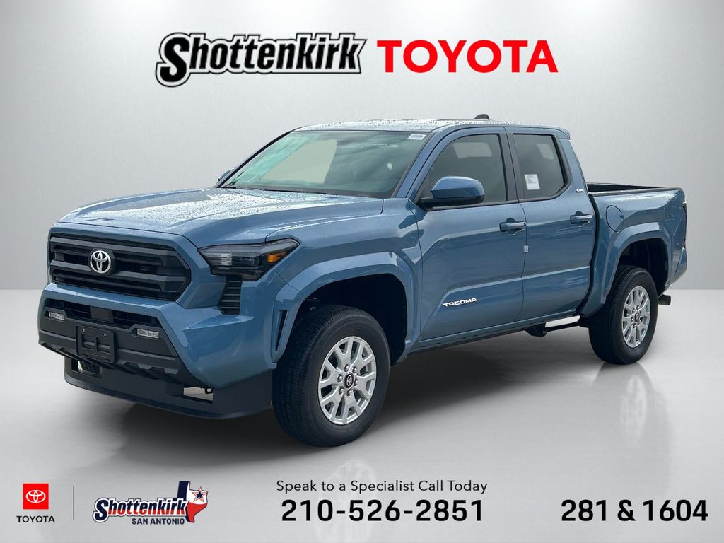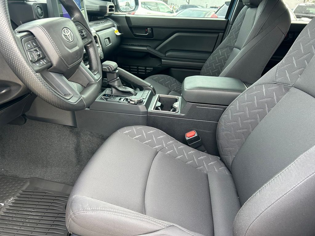 2026 Toyota Tacoma SR5 4WD, 3.583 Axle Ratio, 4-Wheel Disc Brakes, 6 Speakers, ABS brakes, Air Conditioning, Alloy wheels, AM/FM radio: SiriusXM, Anti-whiplash front head restraints, Apple CarPlay/Android Auto, Auto High-beam Headlights, Auto-dimming Rear-View mirror, Brake assist, Bumpers: body-color, Driver door bin, Dual front impact airbags, Dual front side impact airbags, Electronic Stability Control, Emergency communication system: Safety Connect (up to 10-year trial subscription), Exterior Parking Camera Rear, Fabric Seat Trim, Four wheel independent suspension, Front anti-roll bar, Front Bucket Seats, Front Center Armrest, Front fog lights, Front reading lights, Fully automatic headlights, Heated door mirrors, Illuminated entry, JBL Premium Audio, Knee airbag, Low tire pressure warning, Occupant sensing airbag, Outside temperature display, Overhead airbag, Overhead console, Panic alarm, Passenger door bin, Power door mirrors, Power steering, Power windows, Radio: 8" Toyota Audio Multimedia, Rear step bumper, Rear window defroster, Remote keyless entry, Speed control, Speed-sensing steering, Split folding rear seat, Spray-on Bed Liner, Steering wheel mounted audio controls, Tachometer, Telescoping steering wheel, Tilt steering wheel, Traction control, Trip computer, Variably intermittent wipers, Wheels: 17" Styled Alloy.