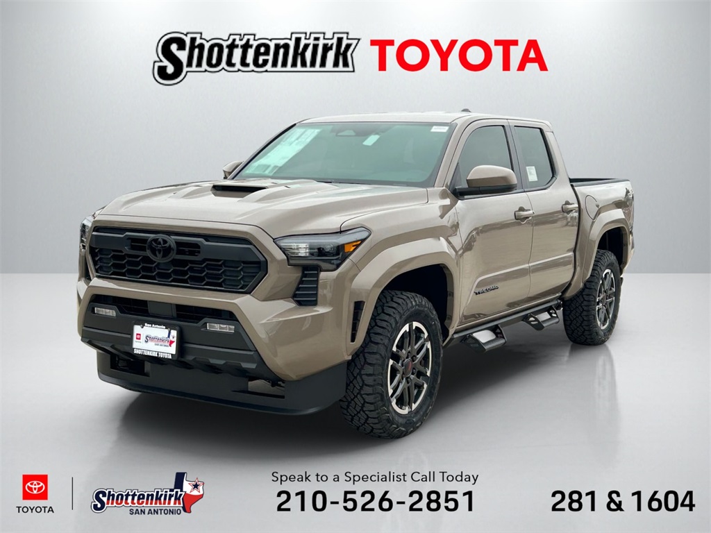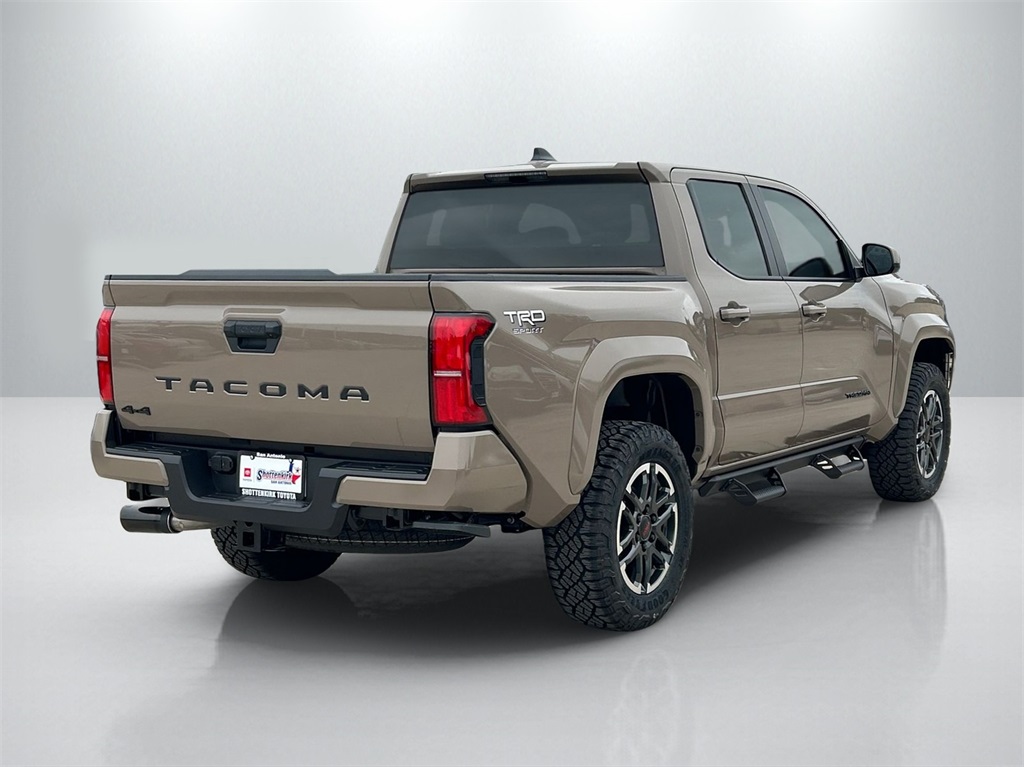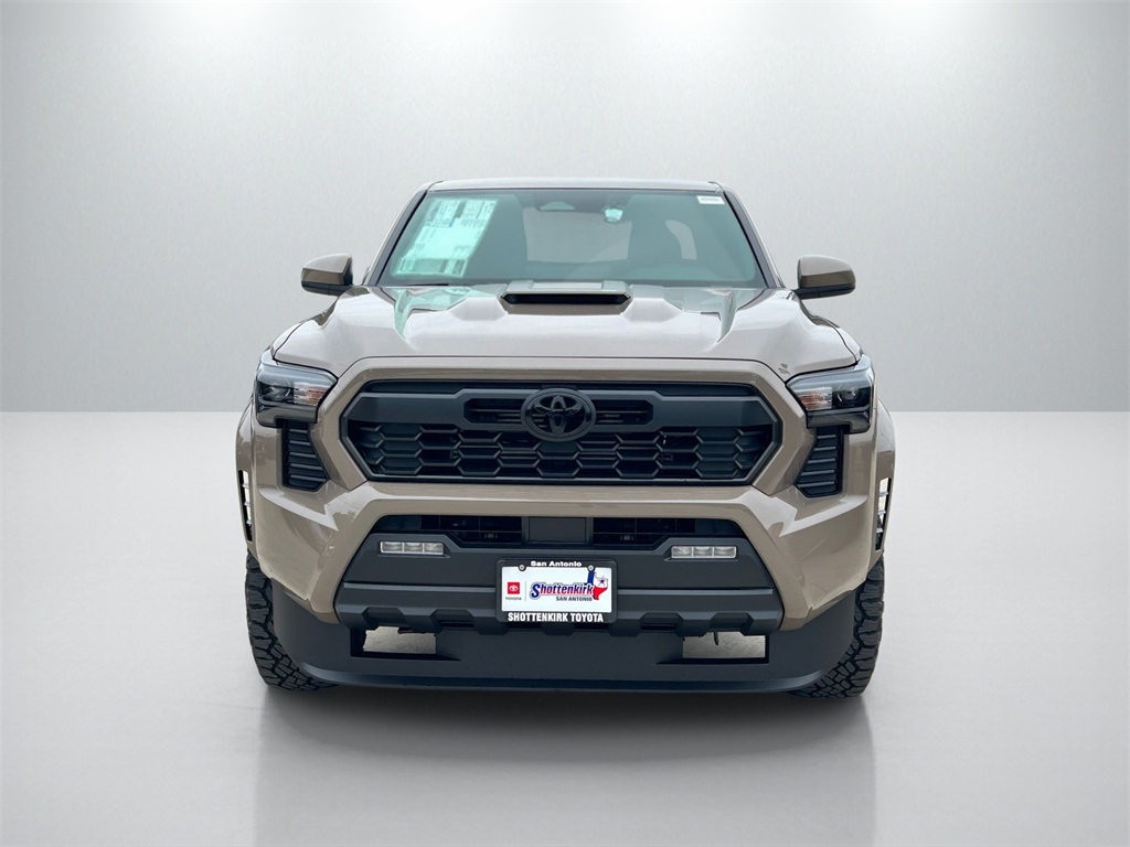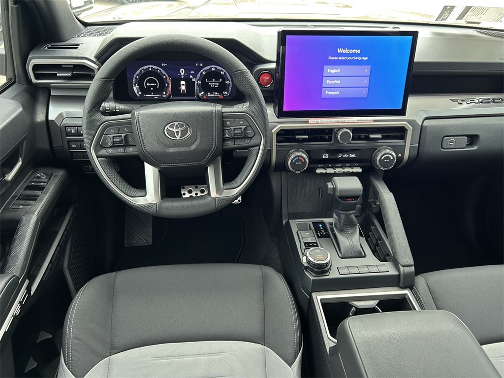 2026 Toyota Tacoma TRD Sport 4WD, 3.583 Axle Ratio, 4-Wheel Disc Brakes, 6 Speakers, ABS brakes, Air Conditioning, Alloy wheels, AM/FM radio: SiriusXM, Anti-whiplash front head restraints, Apple CarPlay/Android Auto, Auto High-beam Headlights, Auto-dimming Rear-View mirror, Automatic temperature control, Bed Step, Brake assist, Bumpers: body-color, Driver door bin, Driver vanity mirror, Dual front impact airbags, Dual front side impact airbags, Electronic Stability Control, Emergency communication system: Safety Connect (up to 10-year trial subscription), Exterior Parking Camera Rear, Fabric Seat Trim, Four wheel independent suspension, Front anti-roll bar, Front Bucket Seats, Front Center Armrest, Front fog lights, Front reading lights, Fully automatic headlights, Heated door mirrors, Illuminated entry, JBL Premium Audio, Knee airbag, Leather Shift Knob, Leather steering wheel, Low tire pressure warning, Occupant sensing airbag, Outside temperature display, Overhead airbag, Overhead console, Panic alarm, Passenger door bin, Passenger vanity mirror, Power door mirrors, Power steering, Power windows, Radio: 8" Toyota Audio Multimedia, Radio: Premium Audio with 14" Display, Rear step bumper, Remote keyless entry, Removable Predator Step, Security system, SofTex Seat Trim, Speed control, Speed-sensing steering, Split folding rear seat, Spray-on Bed Liner, Steering wheel mounted audio controls, Tachometer, Telescoping steering wheel, Tilt steering wheel, Traction control, TRD Sport Package, Trip computer, Turn signal indicator mirrors, Variably intermittent wipers, Wheels: 18" TRD Sport Alloy.