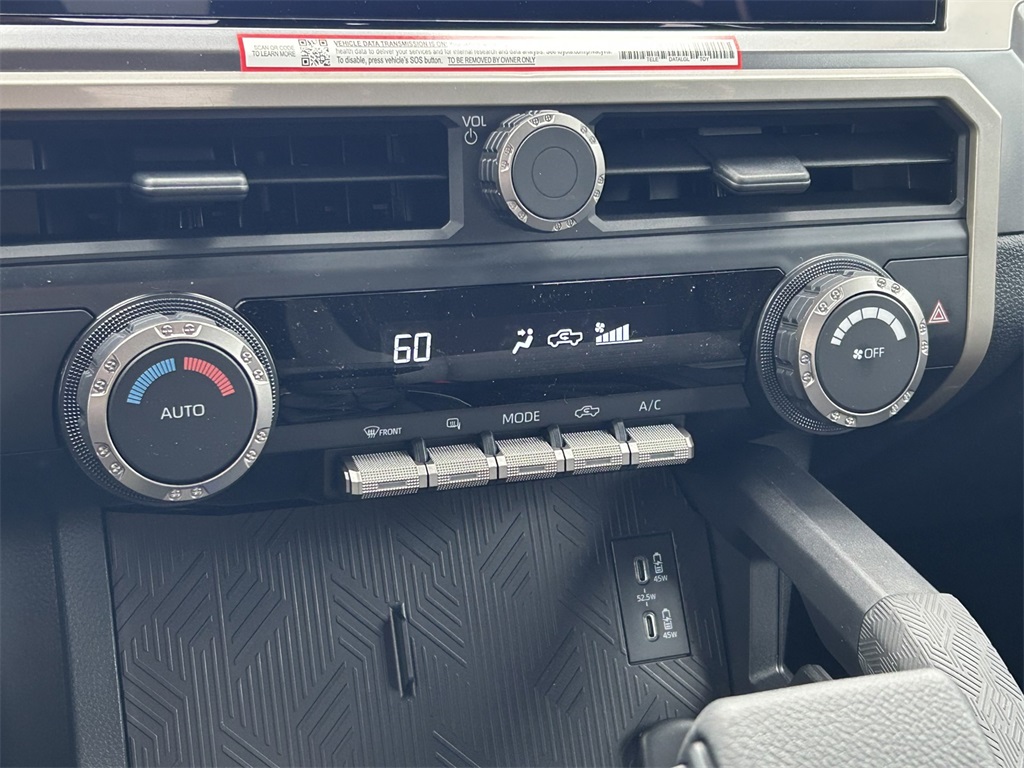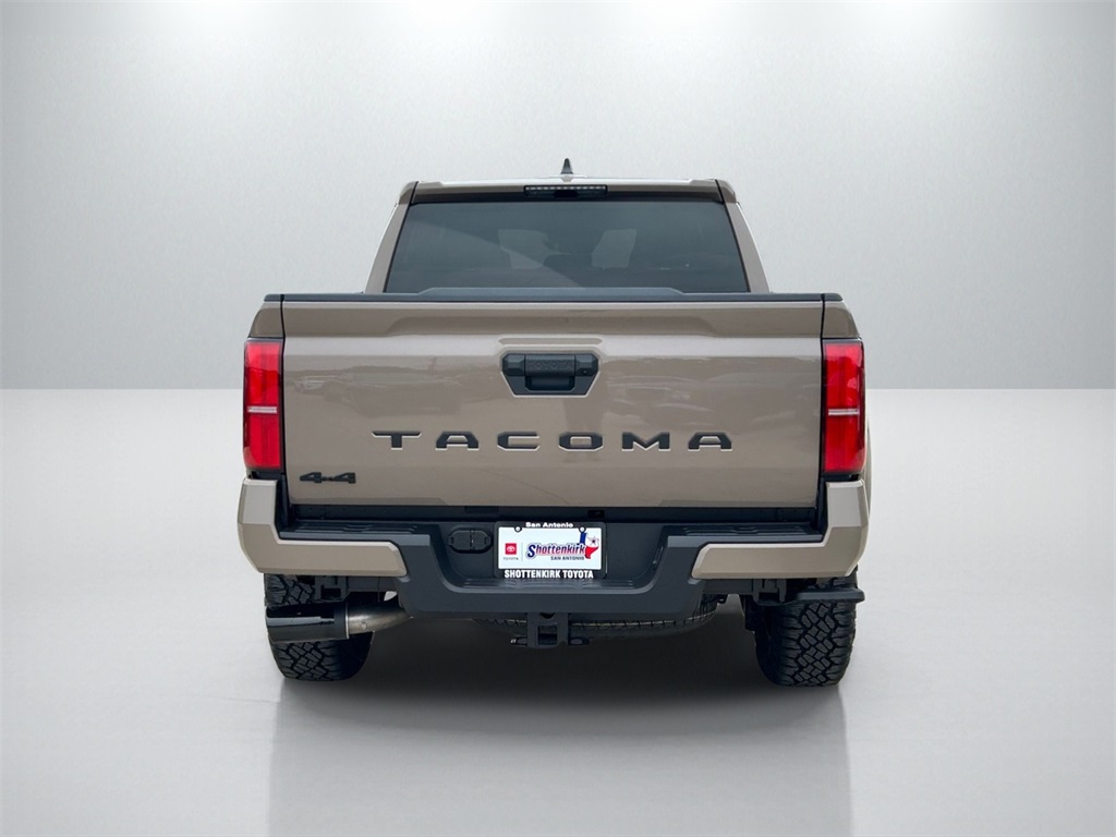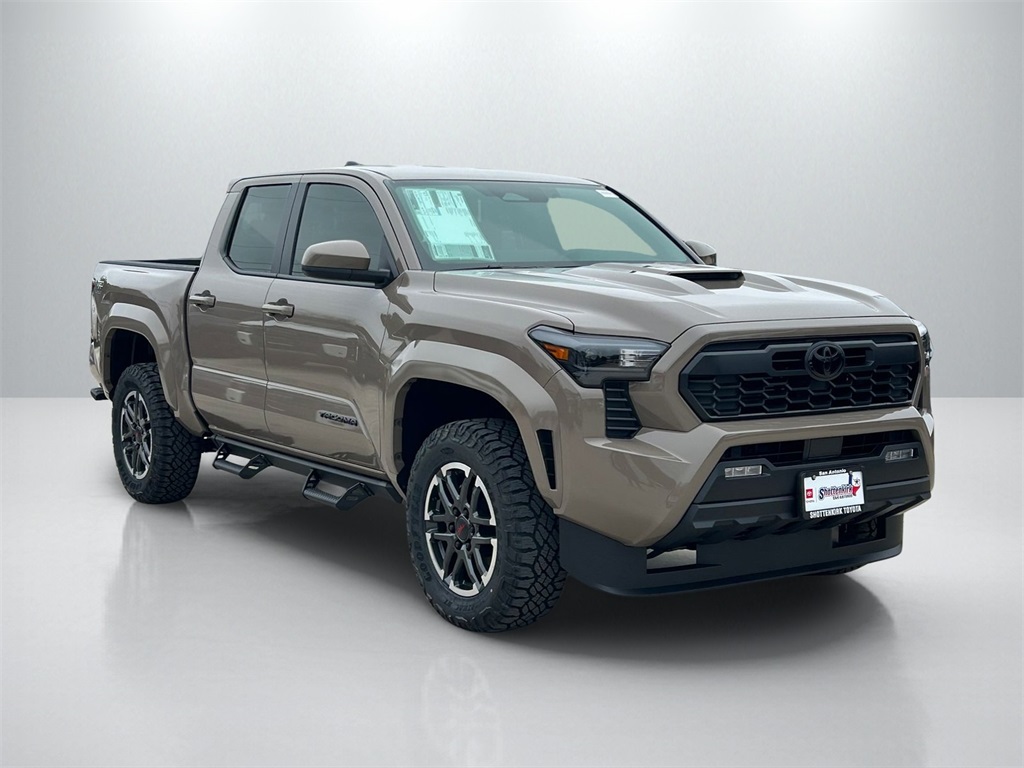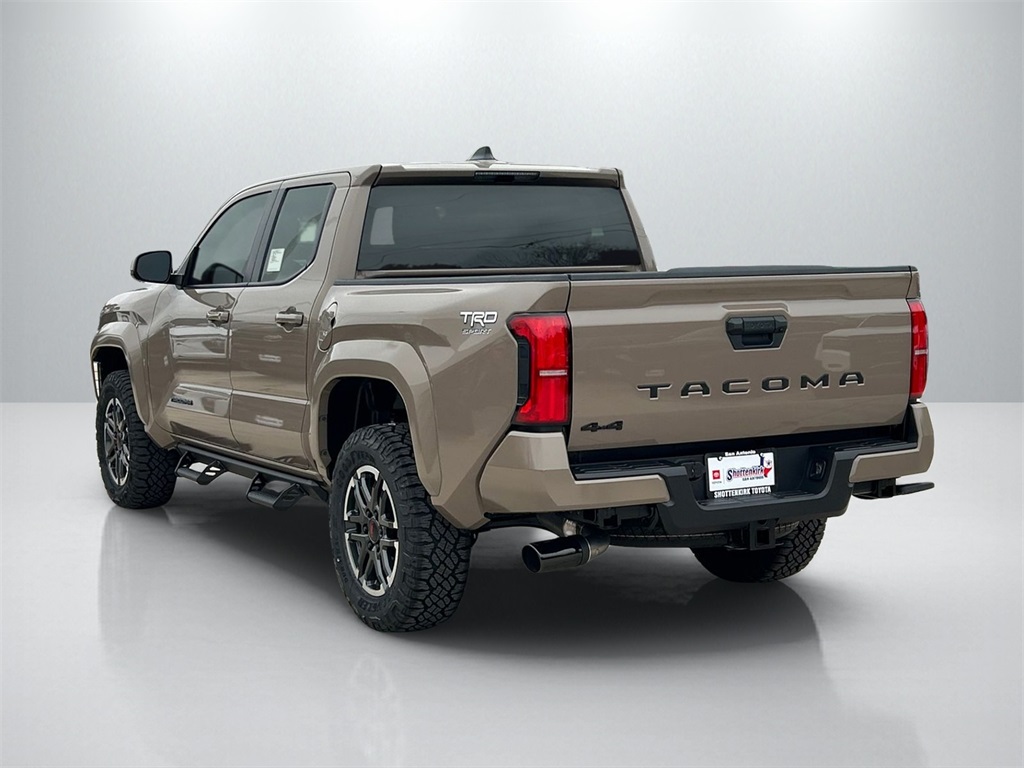 2026 Toyota Tacoma TRD Sport 4WD, 3.583 Axle Ratio, 4-Wheel Disc Brakes, 6 Speakers, ABS brakes, Air Conditioning, Alloy wheels, AM/FM radio: SiriusXM, Anti-whiplash front head restraints, Apple CarPlay/Android Auto, Auto High-beam Headlights, Auto-dimming Rear-View mirror, Automatic temperature control, Bed Step, Brake assist, Bumpers: body-color, Driver door bin, Driver vanity mirror, Dual front impact airbags, Dual front side impact airbags, Electronic Stability Control, Emergency communication system: Safety Connect (up to 10-year trial subscription), Exterior Parking Camera Rear, Fabric Seat Trim, Four wheel independent suspension, Front anti-roll bar, Front Bucket Seats, Front Center Armrest, Front fog lights, Front reading lights, Fully automatic headlights, Heated door mirrors, Illuminated entry, JBL Premium Audio, Knee airbag, Leather Shift Knob, Leather steering wheel, Low tire pressure warning, Occupant sensing airbag, Outside temperature display, Overhead airbag, Overhead console, Panic alarm, Passenger door bin, Passenger vanity mirror, Power door mirrors, Power steering, Power windows, Radio: 8" Toyota Audio Multimedia, Radio: Premium Audio with 14" Display, Rear step bumper, Remote keyless entry, Removable Predator Step, Security system, SofTex Seat Trim, Speed control, Speed-sensing steering, Split folding rear seat, Spray-on Bed Liner, Steering wheel mounted audio controls, Tachometer, Telescoping steering wheel, Tilt steering wheel, Traction control, TRD Sport Package, Trip computer, Turn signal indicator mirrors, Variably intermittent wipers, Wheels: 18" TRD Sport Alloy.