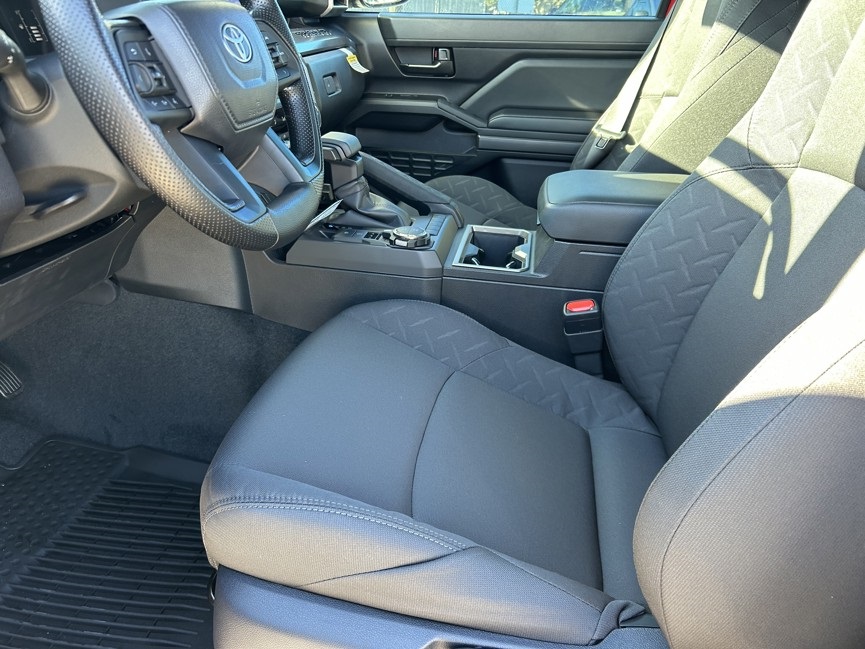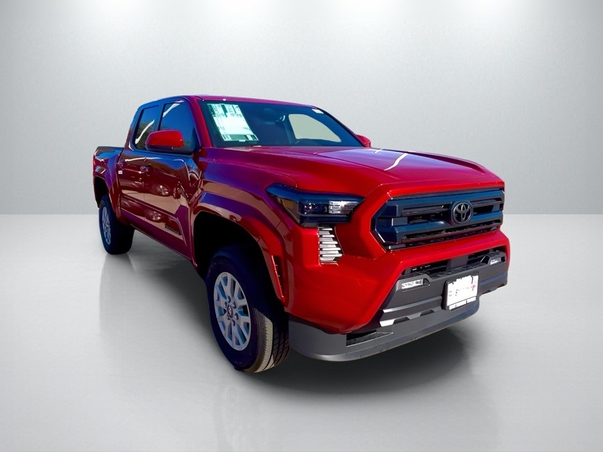 2026 Toyota Tacoma SR5 4WD, 3.583 Axle Ratio, 4-Wheel Disc Brakes, 6 Speakers, ABS brakes, Air Conditioning, Alloy wheels, AM/FM radio: SiriusXM, Anti-whiplash front head restraints, Apple CarPlay/Android Auto, Auto High-beam Headlights, Auto-dimming Rear-View mirror, Brake assist, Bumpers: body-color, Driver door bin, Dual front impact airbags, Dual front side impact airbags, Electronic Stability Control, Emergency communication system: Safety Connect (up to 10-year trial subscription), Exterior Parking Camera Rear, Fabric Seat Trim, Four wheel independent suspension, Front anti-roll bar, Front Bucket Seats, Front Center Armrest, Front fog lights, Front reading lights, Fully automatic headlights, Heated door mirrors, Illuminated entry, JBL Premium Audio, Knee airbag, Low tire pressure warning, Occupant sensing airbag, Outside temperature display, Overhead airbag, Overhead console, Panic alarm, Passenger door bin, Power door mirrors, Power steering, Power windows, Radio: 8" Toyota Audio Multimedia, Rear step bumper, Rear window defroster, Remote keyless entry, Speed control, Speed-sensing steering, Split folding rear seat, Steering wheel mounted audio controls, Tachometer, Telescoping steering wheel, Tilt steering wheel, Traction control, Trip computer, Variably intermittent wipers, Wheels: 17" Styled Alloy.