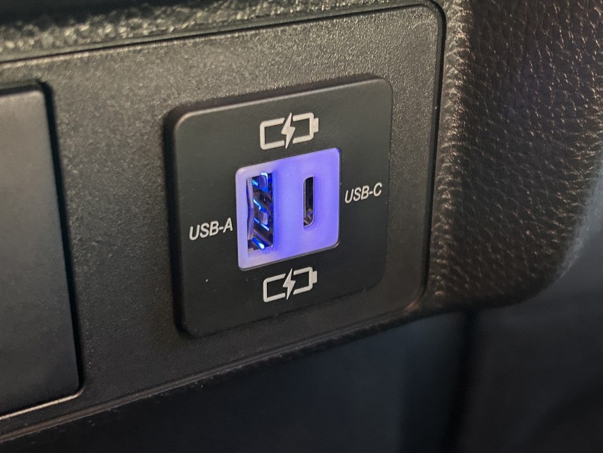 Dual illuminated rear center console-mounted USB charging ports.