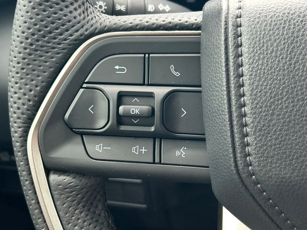 - Leather-wrapped manual tilt/telescopic steering wheel with phone, audio, display/infotainment, and Driver Assist controls
