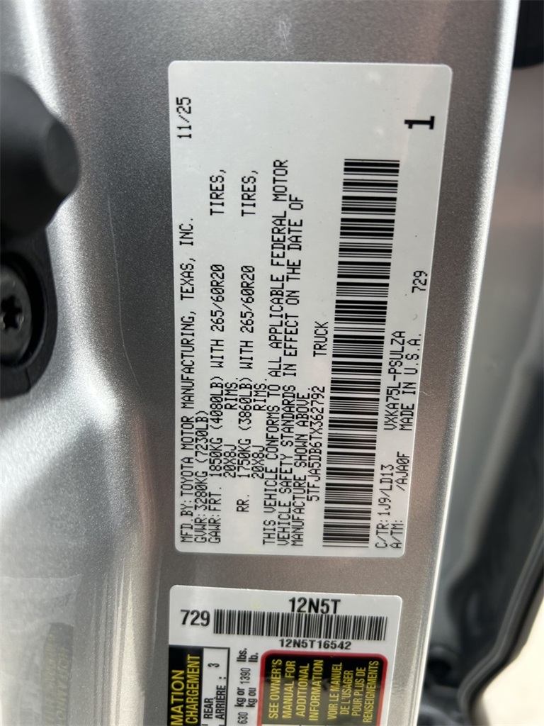 2026 Toyota Tundra Limited 4WD, Boulder w/Leather Seat Trim, 120V Deck & Cabin Power Supply, 20" Alloy Wheels, 3.31 Axle Ratio, 4-Wheel Disc Brakes, 8-Way Pwr Adjustable Heated/Ventilated Front Seats, 9 Speakers, ABS brakes, Air Conditioning, Alloy wheels, AM/FM radio: SiriusXM, Apple CarPlay/Android Auto, Auto High-beam Headlights, Auto-dimming door mirrors, Auto-dimming Rear-View mirror, Automatic temperature control, Bed Step (TMS), Brake assist, Bumpers: body-color, Delay-off headlights, Driver door bin, Driver vanity mirror, Dual front impact airbags, Dual front side impact airbags, Dual-Step Running Board - Black (TMS), Electronic Stability Control, Emergency communication system: Safety Connect (up to 10-year trial subscription), Exterior Parking Camera Rear, Front anti-roll bar, Front Bucket Seats, Front Center Armrest, Front dual zone A/C, Front fog lights, Front reading lights, Front wheel independent suspension, Fully automatic headlights, Garage door transmitter: HomeLink, Heated door mirrors, Heated front seats, Illuminated entry, Knee airbag, Leather Seat Trim, Leather Shift Knob, Leather steering wheel, Low tire pressure warning, Memory seat, Navigation system: Drive Connect Cloud Navigation (1-year trial subscription), Occupant sensing airbag, Outside temperature display, Overhead airbag, Overhead console, Panic alarm, Passenger door bin, Passenger vanity mirror, Power door mirrors, Power driver seat, Power Package, Power passenger seat, Power steering, Power windows, Radio data system, Radio: Audio Plus, Rear reading lights, Rear seat center armrest, Rear step bumper, Rear window defroster, Remote keyless entry, Safety Connect, Security system, Speed control, Speed-sensing steering, Split folding rear seat, Steering wheel mounted audio controls, Tachometer, Telescoping steering wheel, Tilt steering wheel, Traction control, Trip computer, Turn signal indicator mirrors, Variably intermittent wipers, Ventilated front seats, Voltmeter, Wireless Charger.