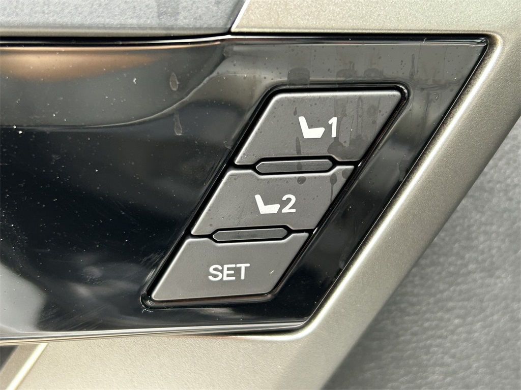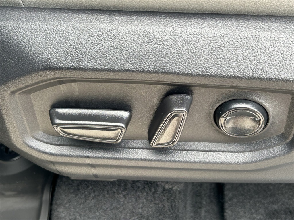 - Leather-trimmed seats with contrast stitching; 8-way power-adjustable driver and front passenger seats with power-adjustable lumbar support