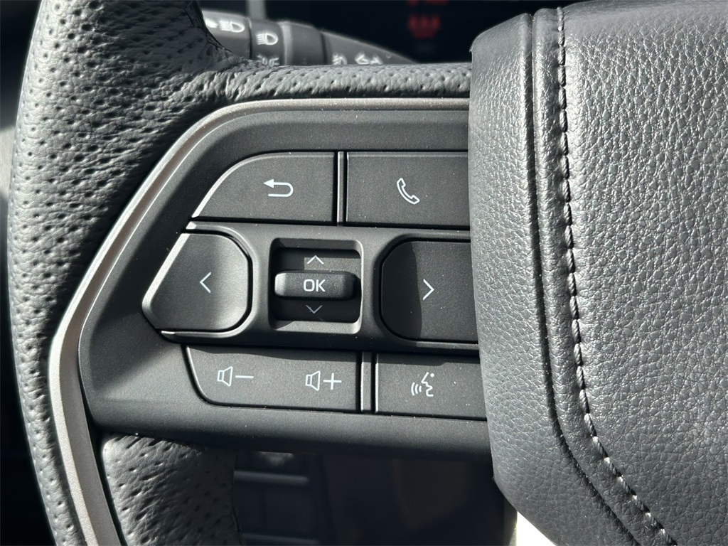 - Leather-wrapped manual tilt/telescopic steering wheel with phone, audio, display/infotainment, and Driver Assist controls