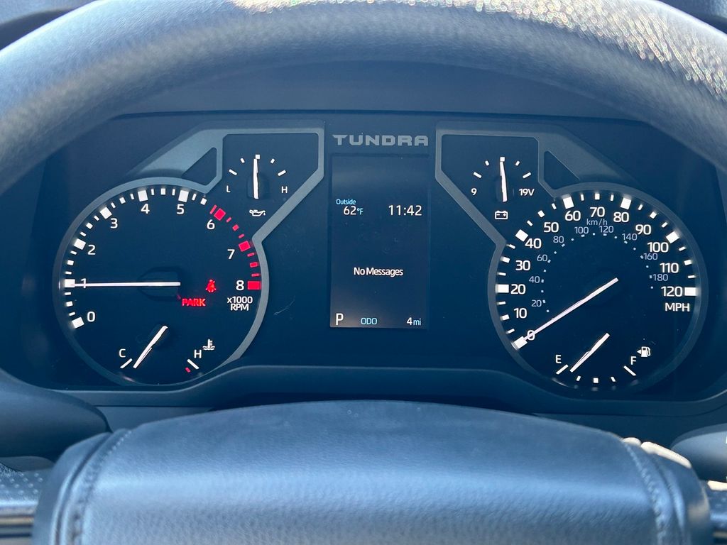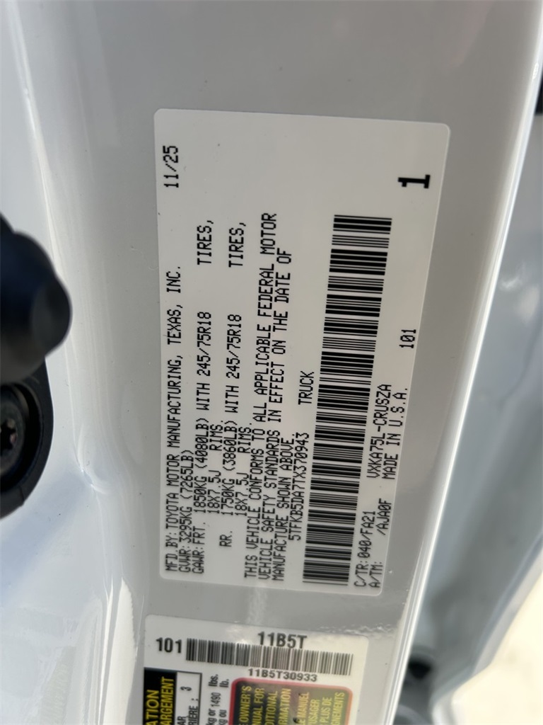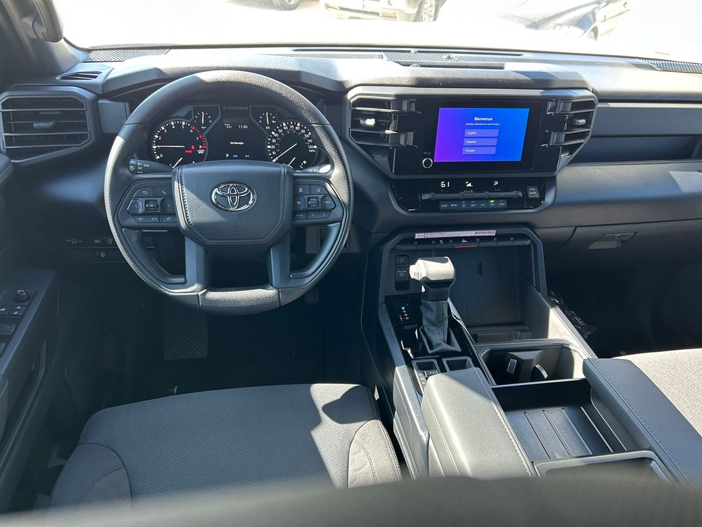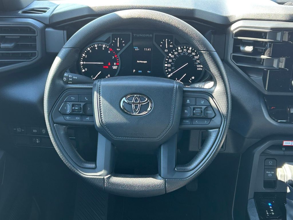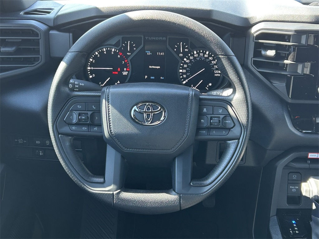 2026 Toyota Tundra SR 4WD, Black w/Fabric Seat Trim, 18" Styled Steel Wheels, 3.31 Axle Ratio, 4-Way Manual Front Seats, 4-Wheel Disc Brakes, 6 Speakers, ABS brakes, Air Conditioning, AM/FM radio: SiriusXM, Apple CarPlay/Android Auto, Auto High-beam Headlights, Automatic temperature control, Brake assist, Bumpers: body-color, Delay-off headlights, Driver door bin, Driver vanity mirror, Dual front impact airbags, Dual front side impact airbags, Electronic Stability Control, Emergency communication system: Safety Connect (up to 10-year trial subscription), Exterior Parking Camera Rear, Fabric Seat Trim, Front anti-roll bar, Front Bucket Seats, Front Center Armrest, Front reading lights, Front wheel independent suspension, Fully automatic headlights, Heated door mirrors, Illuminated entry, Knee airbag, Low tire pressure warning, Occupant sensing airbag, Outside temperature display, Overhead airbag, Overhead console, Panic alarm, Passenger door bin, Passenger vanity mirror, Power door mirrors, Power steering, Power windows, Radio data system, Radio: Audio Multimedia System, Rear reading lights, Rear step bumper, Rear window defroster, Remote keyless entry, Safety Connect, Security system, Speed control, Speed-sensing steering, Split folding rear seat, SR Package, Steering wheel mounted audio controls, Tachometer, Telescoping steering wheel, Tilt steering wheel, Traction control, Trip computer, Variably intermittent wipers, Voltmeter.
